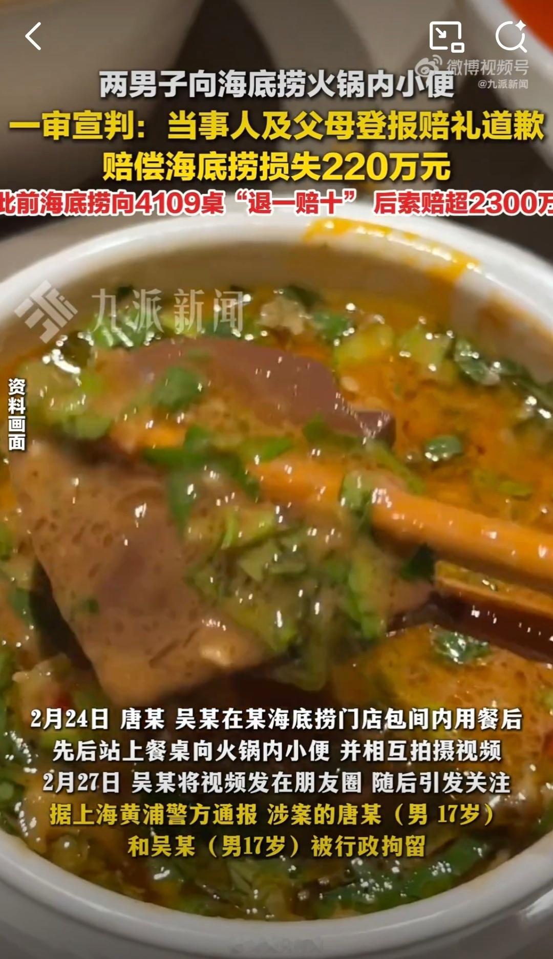 服了!两名17岁男孩居然往火锅里面尿尿,赔偿220万,一泡尿不值得,背后更是素养不行。