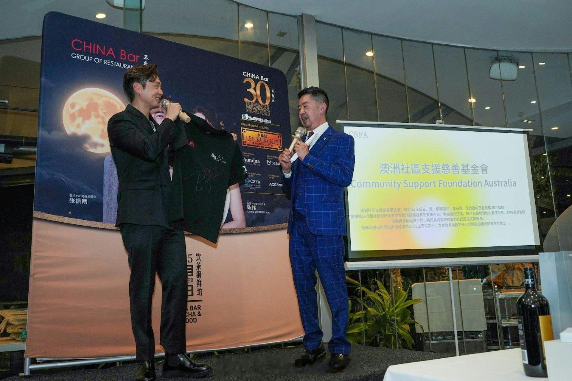 TVB艺人张振朗与陈炜应邀远赴澳洲,参与一连三场中秋系列活动,行程涵盖墨尔本及悉尼,与当地观众及粉丝共庆佳节。三场活动均座无虚席,粉丝反应热烈,活动取得圆满成功。中秋慈善晚宴现场拍卖气氛炽热,善长踊跃支持;粉丝见面会现场气氛高涨。