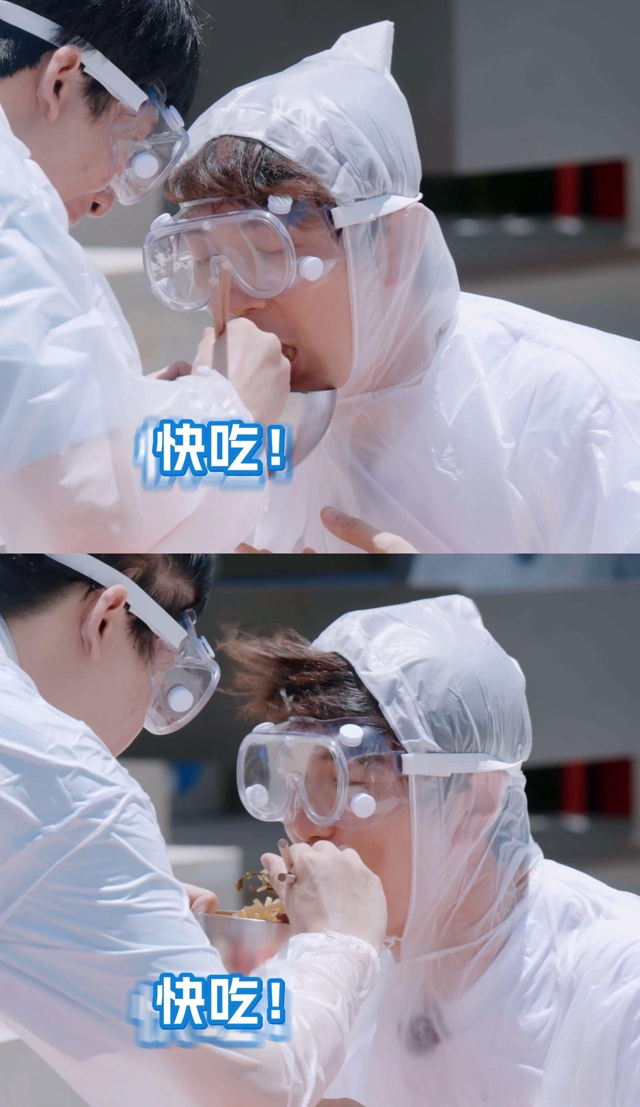 第一次见大张伟这么狼狈看大张伟在面条挑战里的样子,我真的笑到打鸣!大风一刮他整个人都乱了,喂面的时候拖鞋先飞了出去