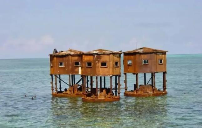 南海风云1:四代高脚屋见证【东门岛】巨变 1988年赤瓜礁海战结束后,中国人民解放军进驻了环境恶劣且敌情复杂的东门礁。自进驻那一刻起,反侦察、防偷袭、抗袭扰便成了守礁官兵每日的必修课,东门礁也因此被官兵们誉为“南海国门第一礁”。 1988年初,到东门礁时,条件极为艰苦,第一代守礁官兵只能栖身于简易的高脚屋中。这种高脚屋以竹竿为柱、篾席作墙、沥青封顶,在海风的吹拂下,仿佛是漂浮在海面上的摇篮,不停地左右摇晃。 1988年年末,守礁的官兵们搬进了面积30平方米的铁皮房屋。 到了1990年,官兵们的居住条件再次升级,他们住进了钢筋水泥筑成的礁堡。这座第三代混凝土堡垒,成为了驻守军官居住与生活时间最长的地方,总面积达380平方米,既要容纳几十名官兵,又承担着训练场所的重任。 东门礁的驻守条件历经多次变迁,从最初的竹制棚屋,到后来的铁皮高脚屋,再到混凝土堡垒,尽管条件有所改善,但整体空间依然显得局促。 2013年,随着吹沙填海工程的实施,东门礁的面积扩大至8万平方米,守岛的官兵们也喜迁新居。吹填完成后,开始了10多年的建设。 当前的东门岛,已成功构建起完备的现代化基础设施体系。岛上不仅拥有规模宏大的货运码头,还矗立着功能完备的导航灯塔,海水淡化系统与稳定的电力供应网络为驻岛人员提供了坚实的生活保障。全岛4G通信网络实现无缝覆盖,确保信息传递畅通无阻,万吨级补给舰可直接靠泊进行物资装卸作业。 在战略防御层面,东门岛部署了具备先进探测能力的雷达监测站。当发现越方军事力量有异常接近迹象时,驻岛部队不仅能立即实施有效防御,更可通过现代化指挥系统快速协调周边大型岛屿的支援力量。这种立体化的防御体系,使岛屿在应对突发情况时既能保持主动防御态势,又能获得及时有效的战略支援,形成攻防协同的完整作战链条。