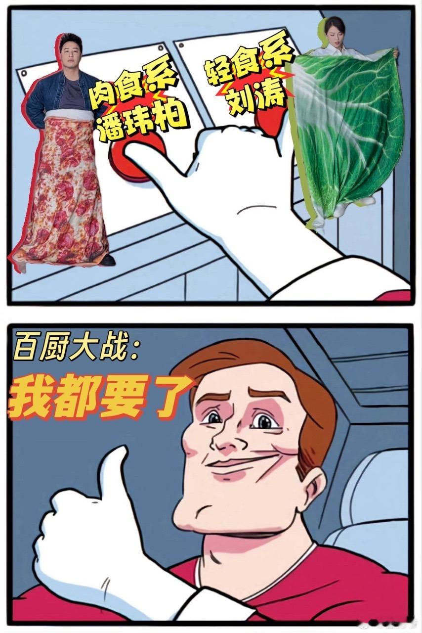 潘玮柏刘涛鸳鸯锅炙热游戏百厨大战 刚刷到他俩的上班路透笑到不行!潘玮柏披香肠披萨毯,刘涛裹生菜毯,红配绿站一起活脱脱鸳鸯锅,这节目组也太会整活了吧!