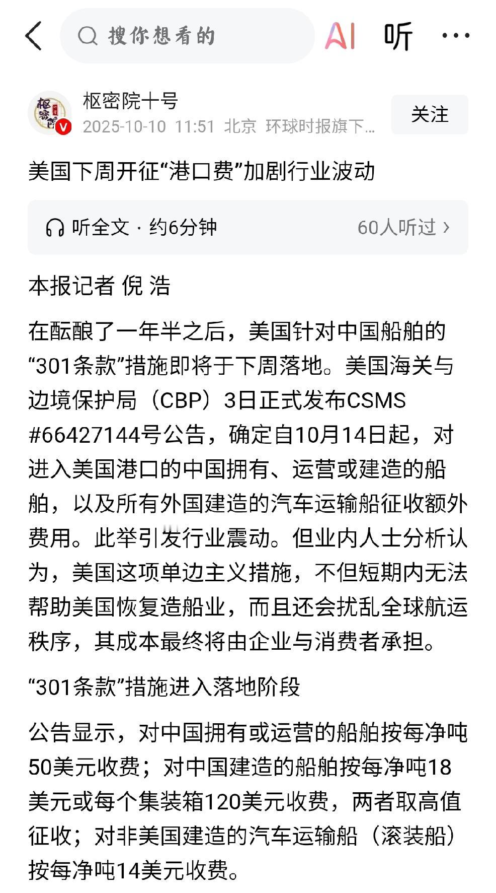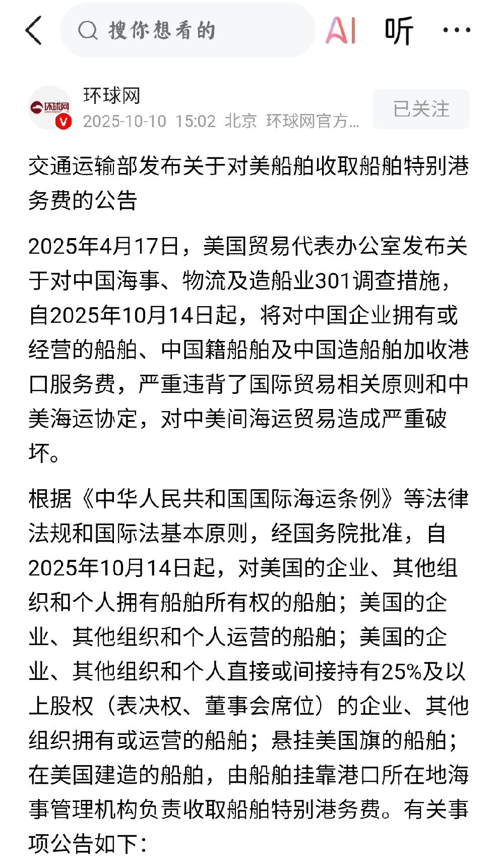 特朗普:作死美国行业 个人认为:中国不买美国的大豆,特朗普又出新招。前一阶段的港务费,刚刚生效。这回飞机又禁飞。个人认为:特朗普是拿捏-控制美国的具体行业,有步骤的用老办法 — 加税,试图打击中国经贸。 说明特朗普及其代表的那一些人,已经没有更好的办法,只能用简单粗暴的套路来展示霸权。 我想这些套路的背后,那些利益受损的行业及其人员,会如何自保和反击,不久的将来,肯定会有反应。拭目以待。 量变积累到一定阶段,终会引发质变。美国