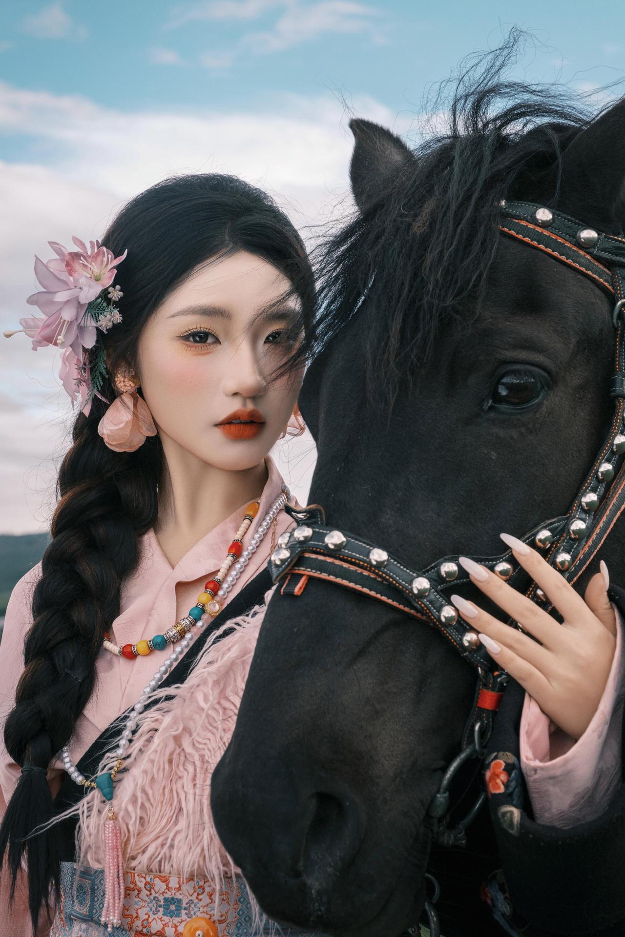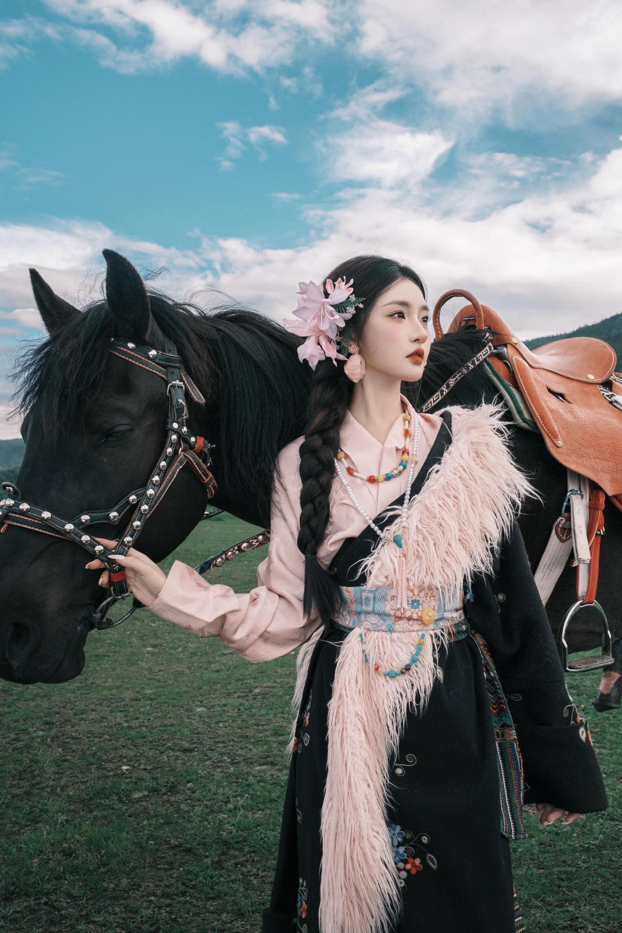 马背轻摇圹马背民族少女少女情深马背少女民族风穿搭