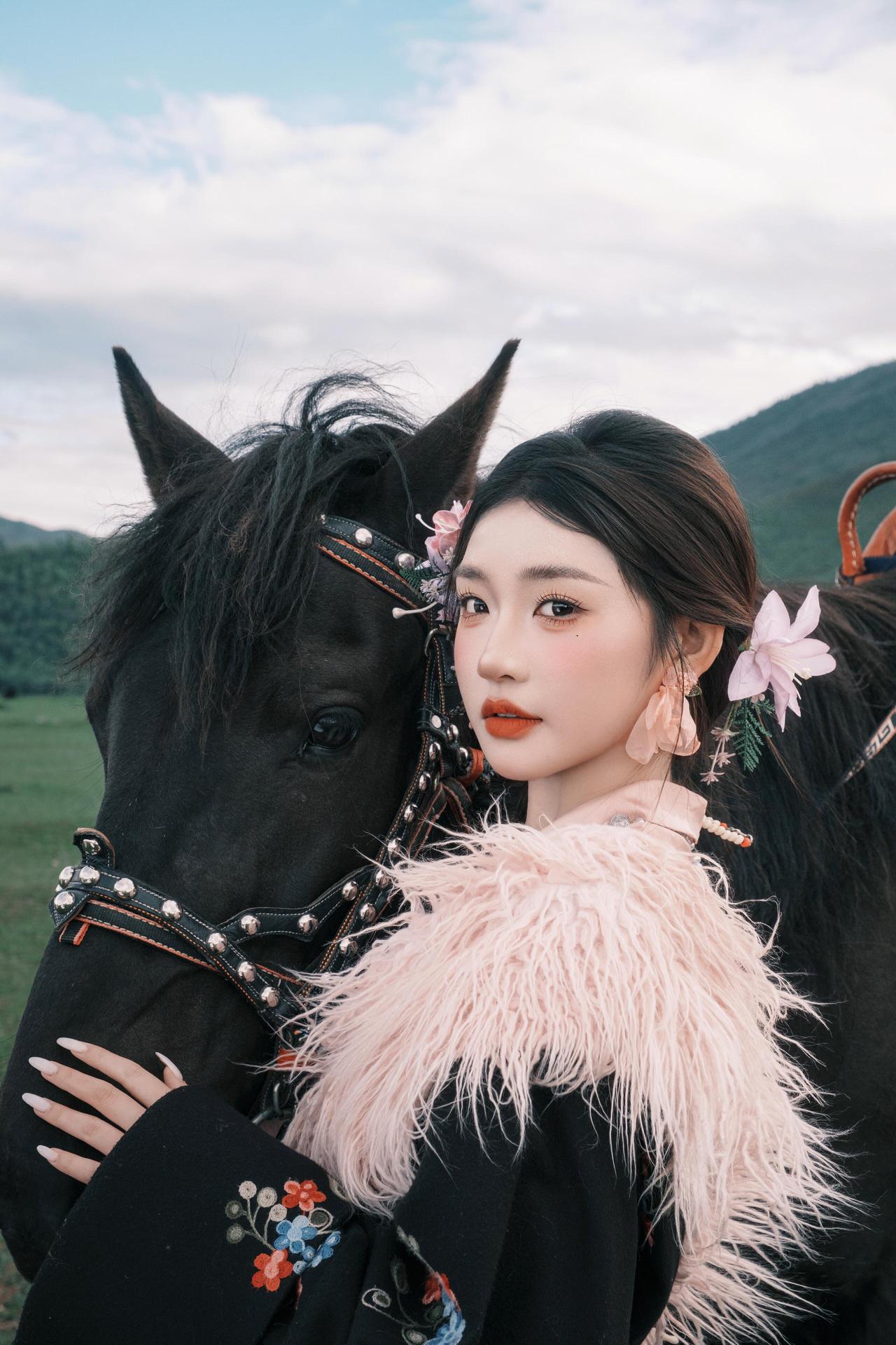 马背轻摇圹马背民族少女 少女情深马背少女 民族风穿搭
