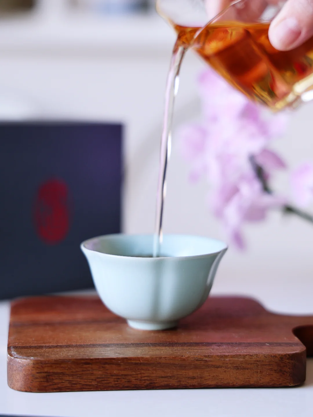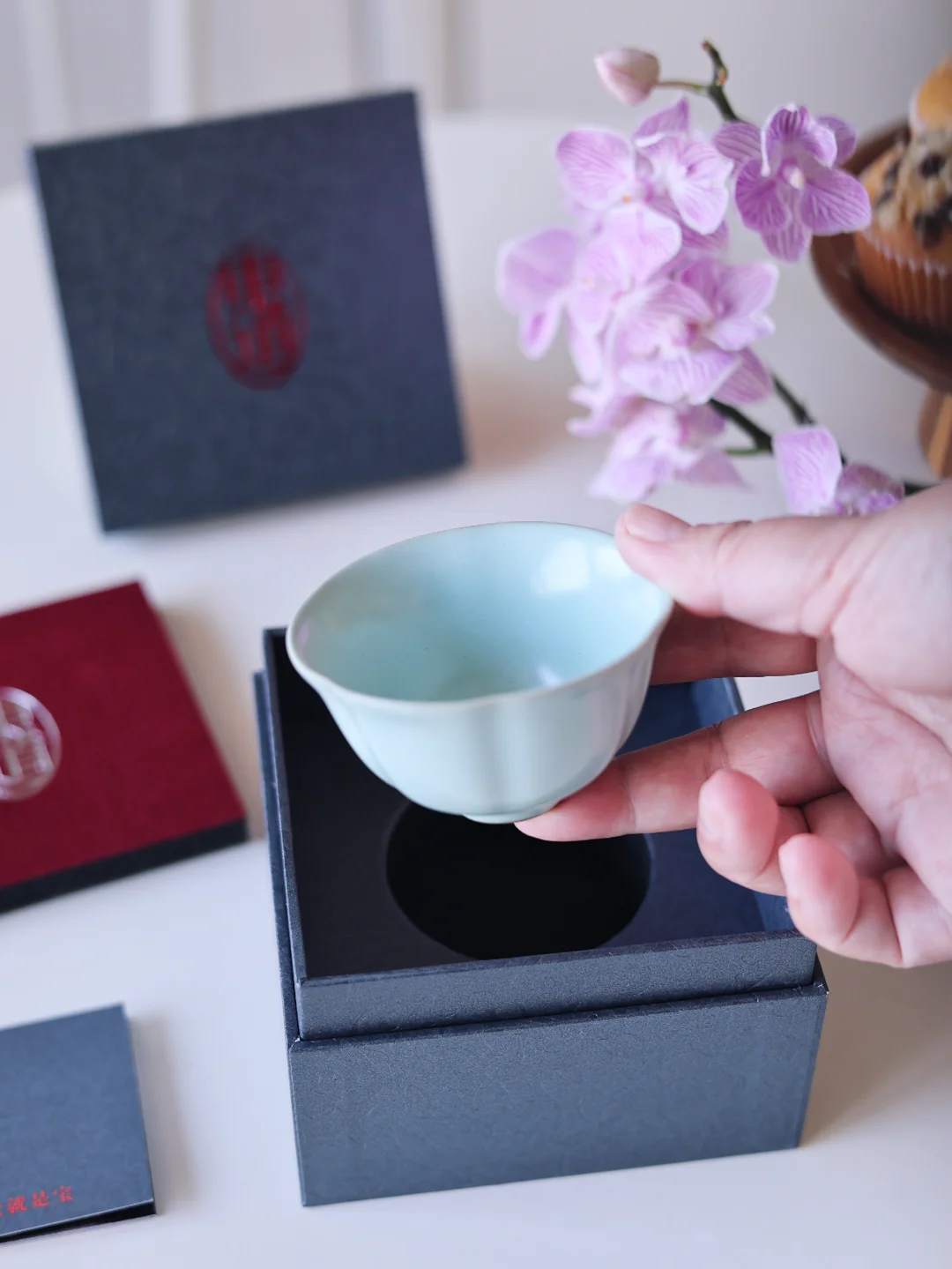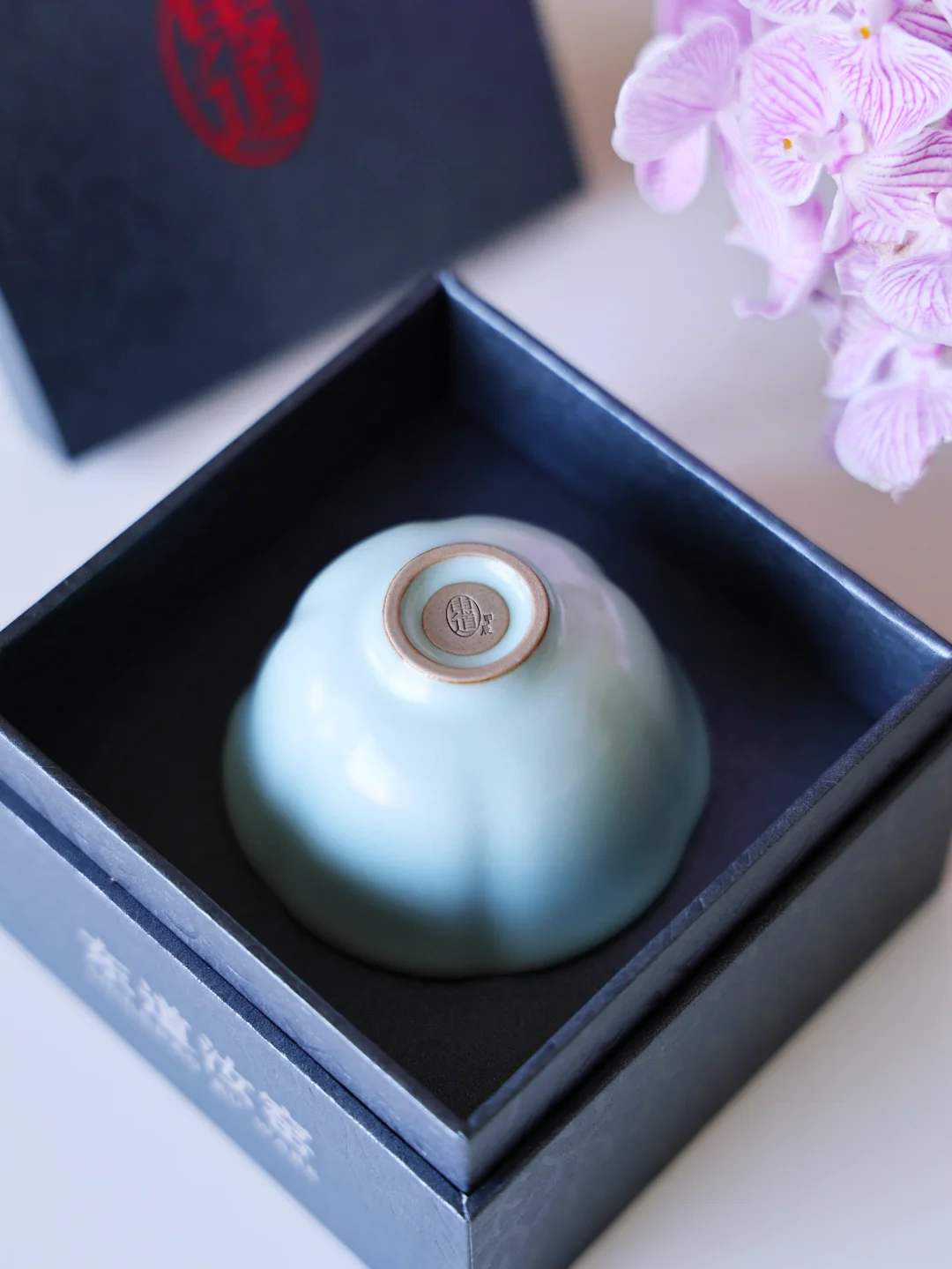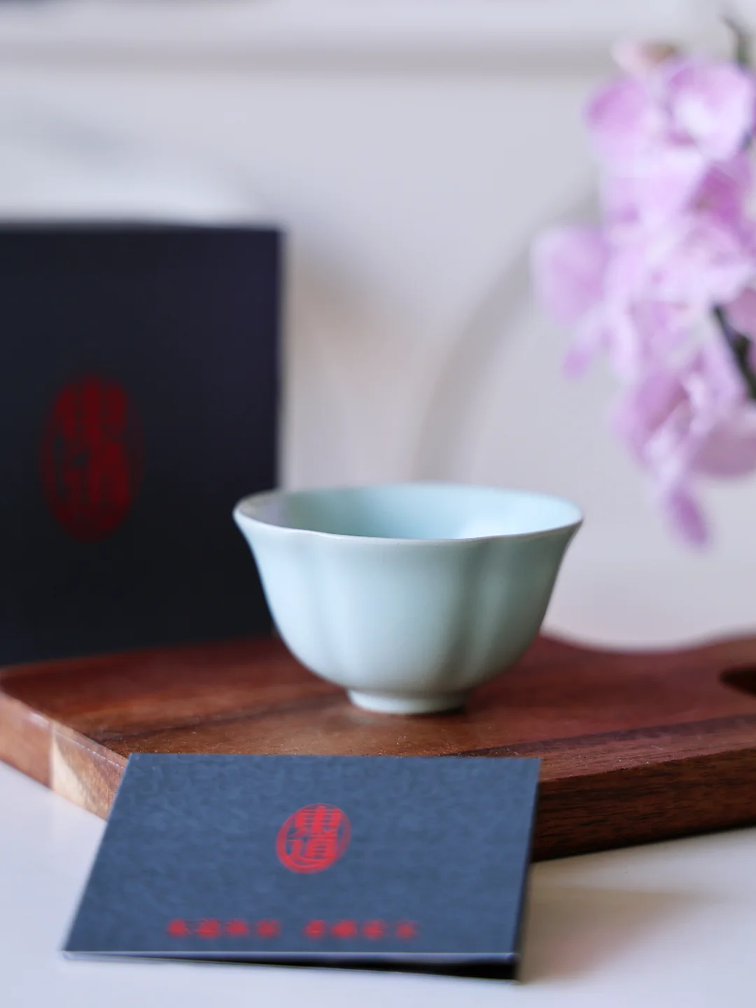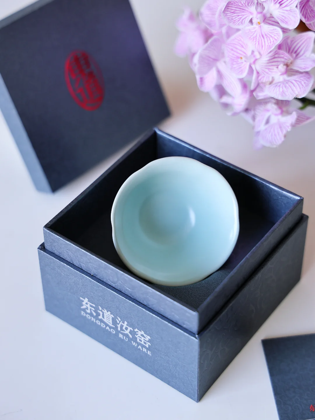 冬日的午后,阳光从窗外斜斜地照进来,温暖而不刺眼,带着一丝淡淡的金色光辉,轻轻洒满房间的每个角落。 此时,最惬意的事,莫过于沏一壶热气腾腾的茶,再配上一盘美味的点心,惬意又放松。 慢慢泡茶,细细品味。喝茶需要工夫、经验,不是说像喝可乐那样扭开盖子就立马可得的,要有个过程,要等一等。喝茶的过程就像一个仪式,必须慢下来,心急是喝不得好茶的。 新入手的东道汝窑中葵杯,有着温润如玉的天青色和经典的葵瓣造型,实用又与众不同 这款中葵杯,来自河南宝丰,中国汝窑【发源地】,复刻宋代汝窑烧制工艺与配方 经过上千摄氏度高温还原烧制,以为玛瑙入料,成就每一只独一无二的实用型【藏品】,东道汝窑汝窑汝窑茶具茶杯 文玩 中葵品杯造型如盛开的花朵,寓意顽强生命力,随着时间的流转,杯子会玉化包浆,还会随着茶水的洗礼,形成独特的开片纹,可以是蝉翼纹,也可以是网状纹,好期待我的杯子会是怎样的纹路呐。 生活不止眼前的苛且,还有茶和远方的田野。深呼吸,去感受一缕茶香。