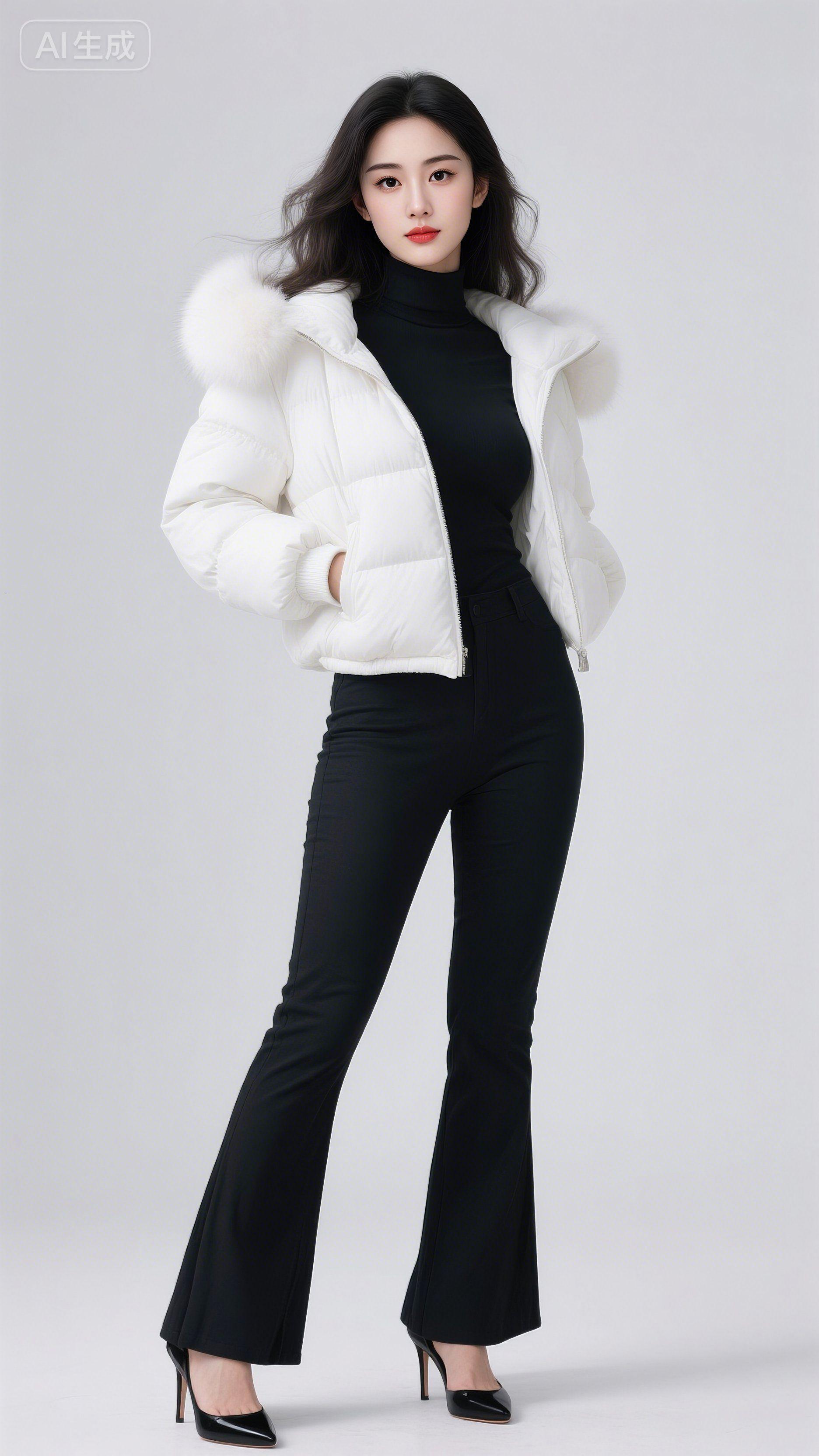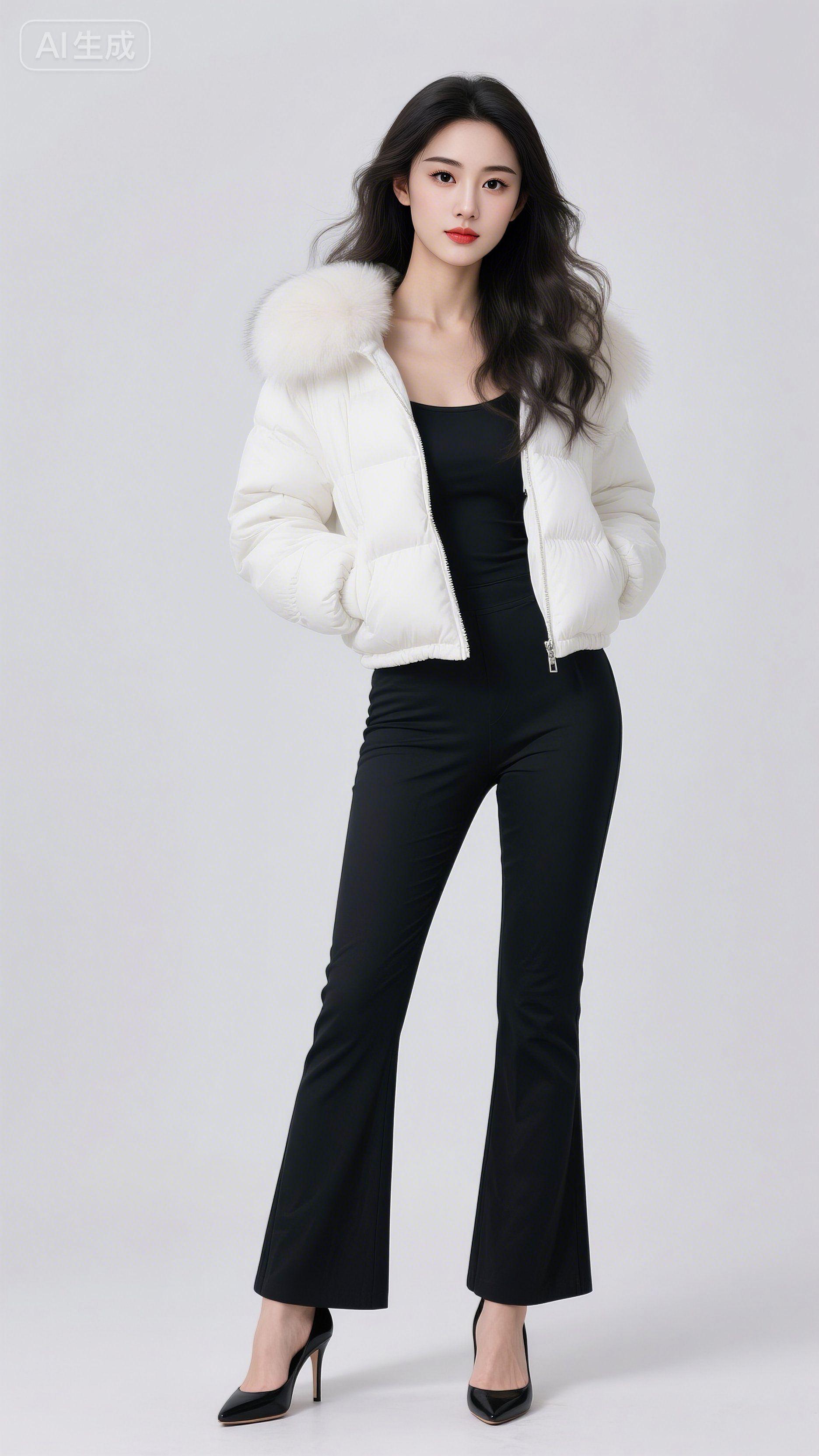 羽绒服显瘦高级感穿搭大长腿小蛮腰肚子沒有一点膘ai