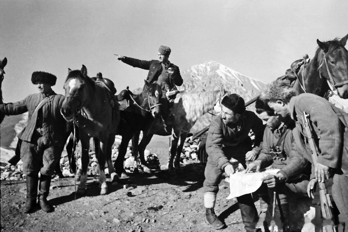 1942年高加索奥尔忠尼启则地区游击队接受新的战斗任务,骑在马上的是指挥官Дза