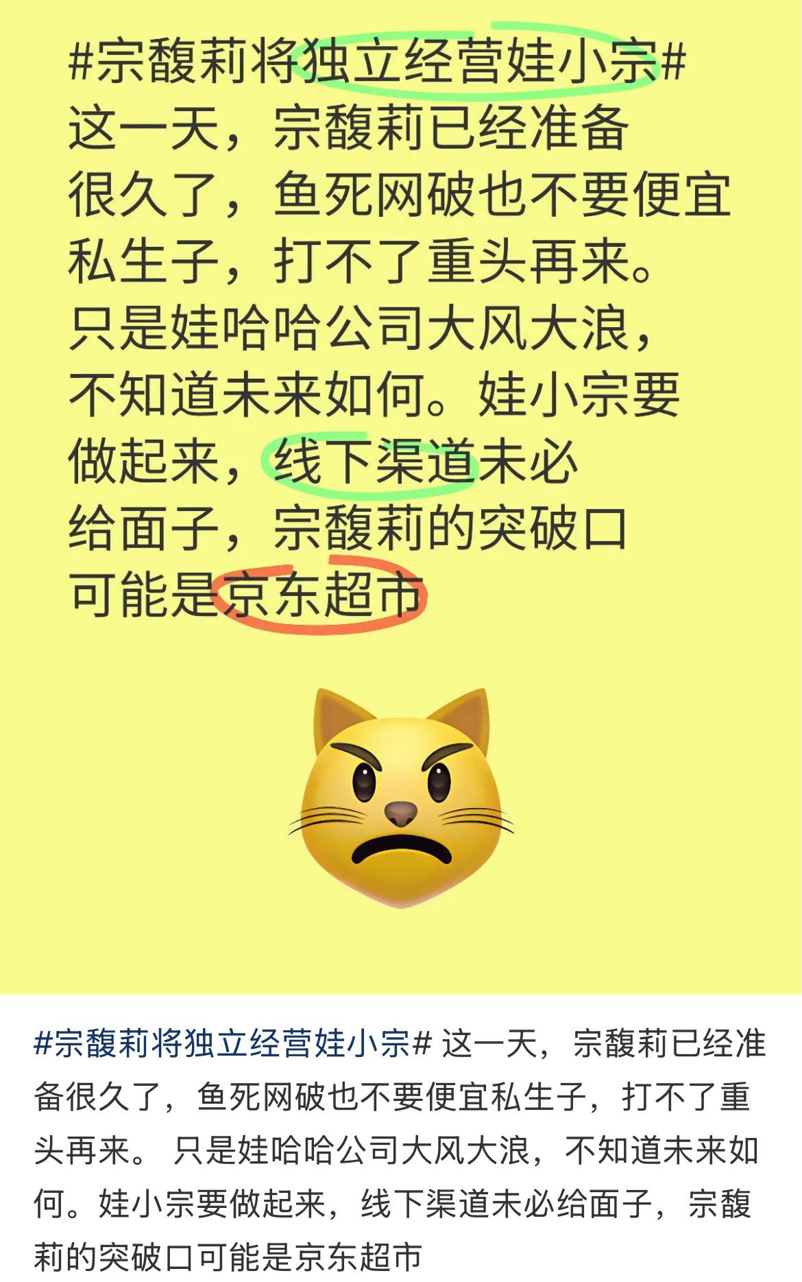 别再说宗馥莉翻不了身了, 她哪是认输, 明明是在主动破局! 辞职娃哈哈董事长哪是什么败笔,更像是场早有预谋的“金蝉脱壳”。 老宗走后,她的处境确实憋屈:国资和职工持股会占了七成多股份,“娃哈哈”商标用着得看所有人脸色,想改革又处处受制。 加上遗产官司缠身,香港高院还驳回了她的上诉,百亿资金成了非婚生弟妹的信托财产,内忧外患压得人喘不过气。 但谁能想到,她早偷偷注册了“娃小宗”商标,把自己的宏胜集团打造成了后路。 现在辞了职,反倒不用再跟旧体系拉扯,能全力推新品牌,之前搞的数字化、渠道改革也刚好派上用场。 而此前爆出宗庆后的私生子,因遗产问题,也是让宗馥莉不太安宁。 这样既要顾整个偌大的公司,又要处理家庭内部纠纷,任一个正常人也是兼顾不过来,更何况是宗馥莉呢? 这么好的女娃子,不知以后的她会是怎样。大家觉得她还能翻身吗? “娃小宗”能接上“娃哈哈”的班吗?宗馥莉公主 宗馥莉公主 宗馥莉财产纠纷