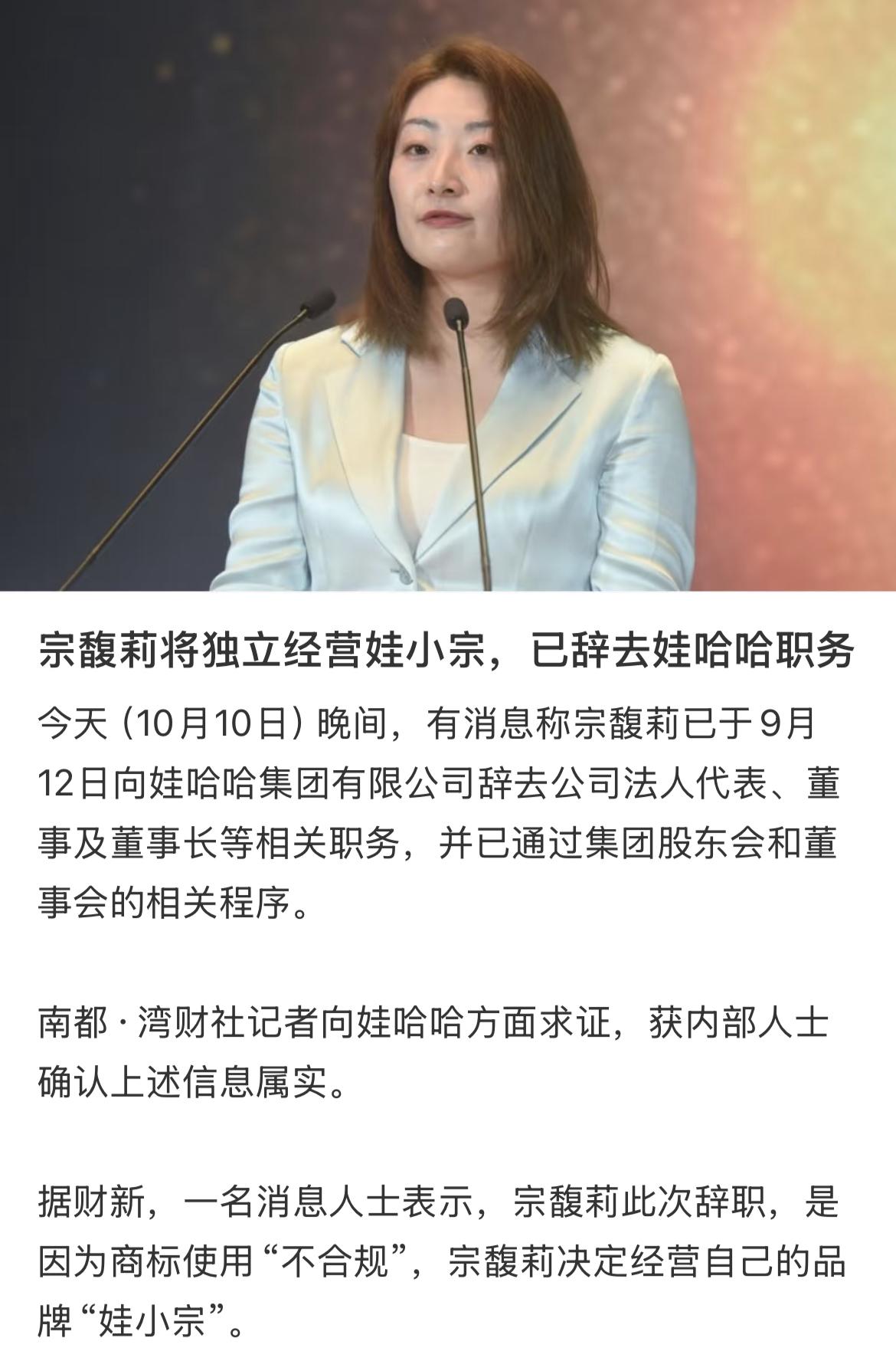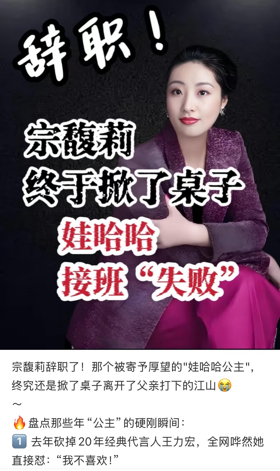 别再说宗馥莉翻不了身了, 她哪是认输, 明明是在主动破局! 辞职娃哈哈董事长哪