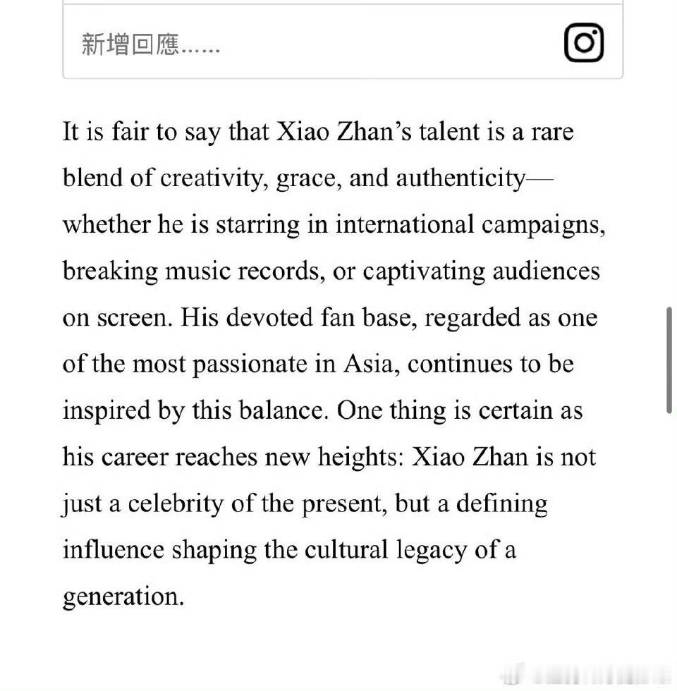 “作为时尚标杆、国民瑰宝和纪录创造者,肖战持续重新定义“时代偶像”的真正内涵。 ”