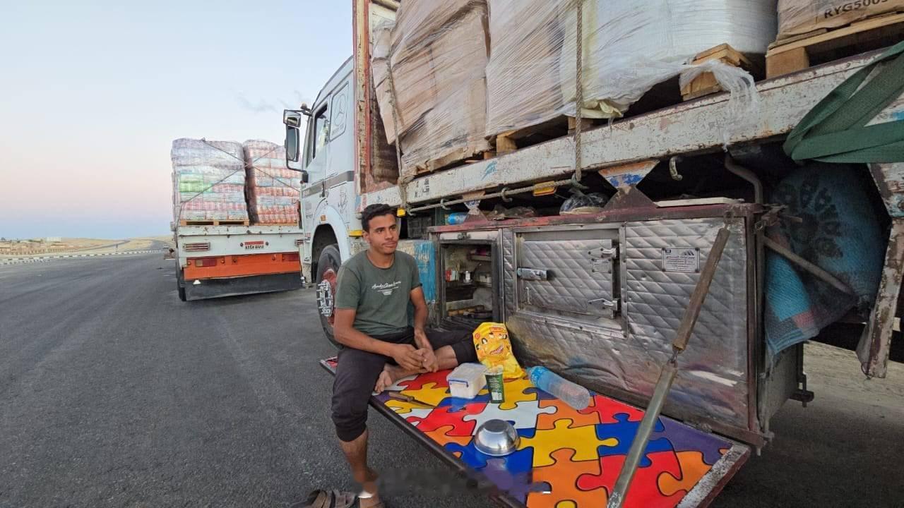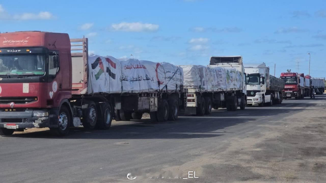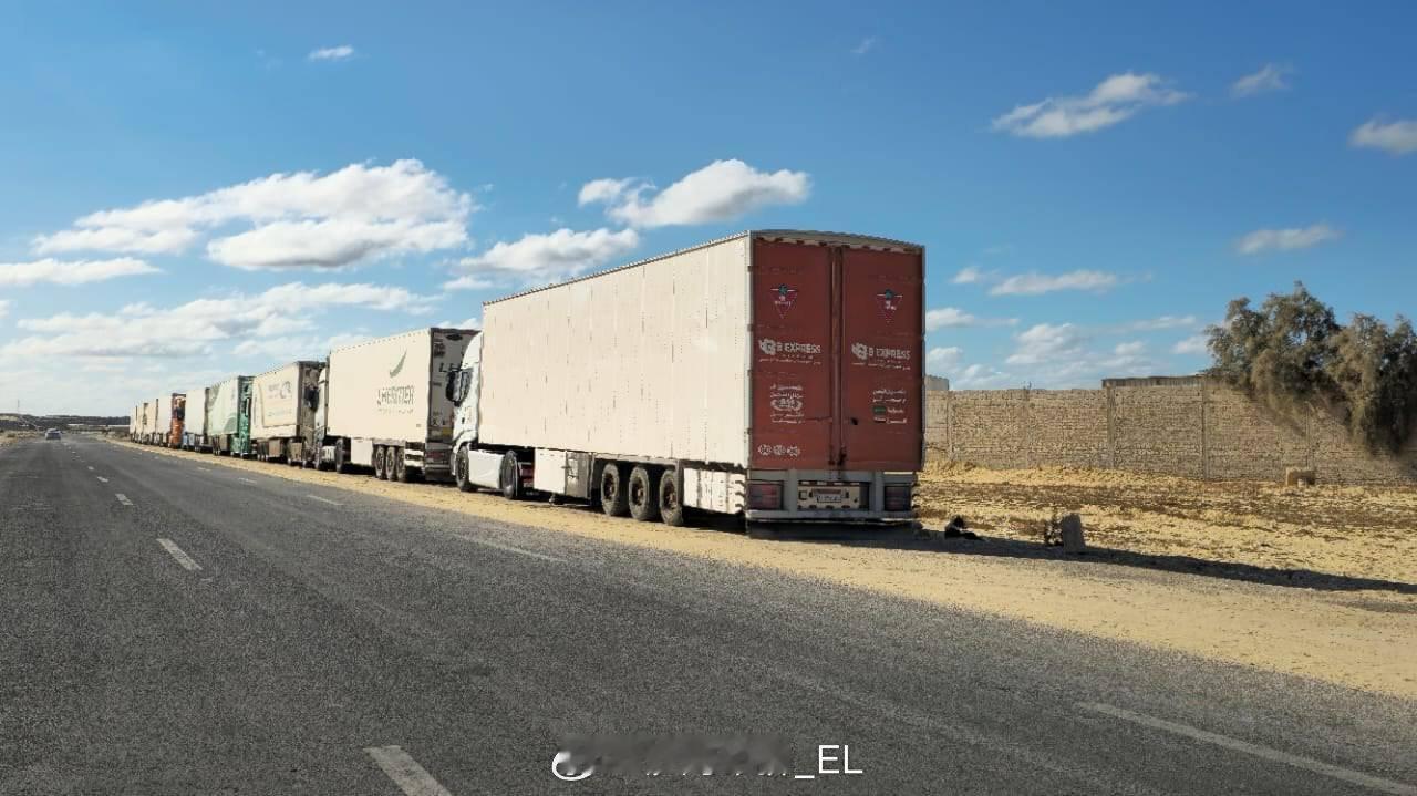 援助卡车等待进入加沙 ​​​