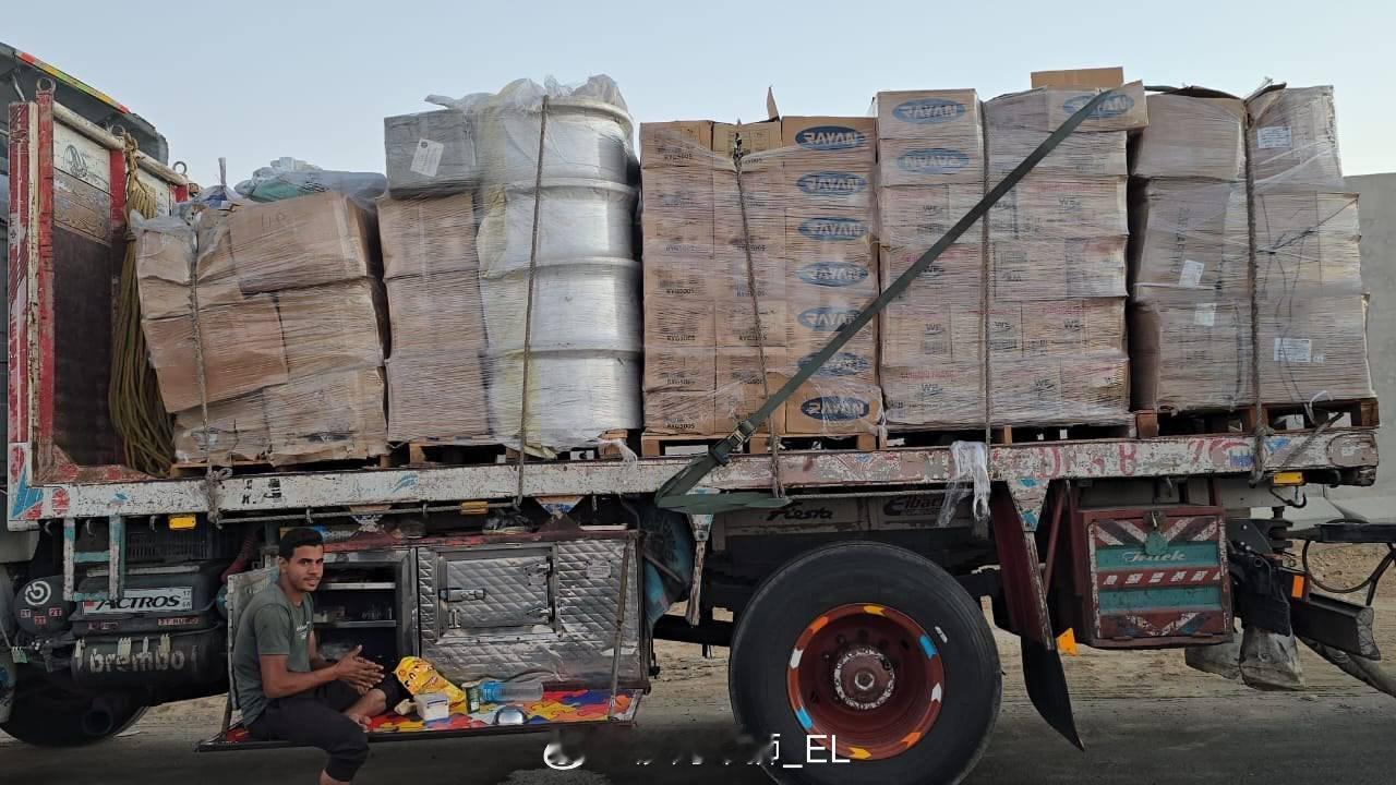 援助卡车等待进入加沙​​​