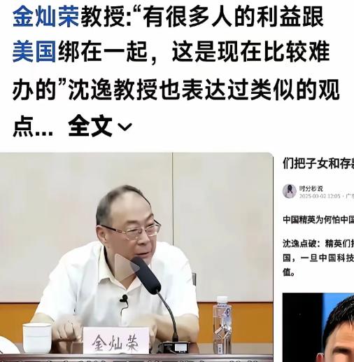 金灿荣教授说,中国好多人的利益和美国绑在了一起,这事现在比较难办的,金教授说出了