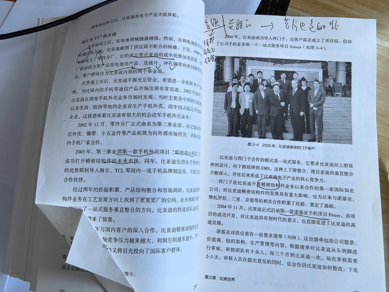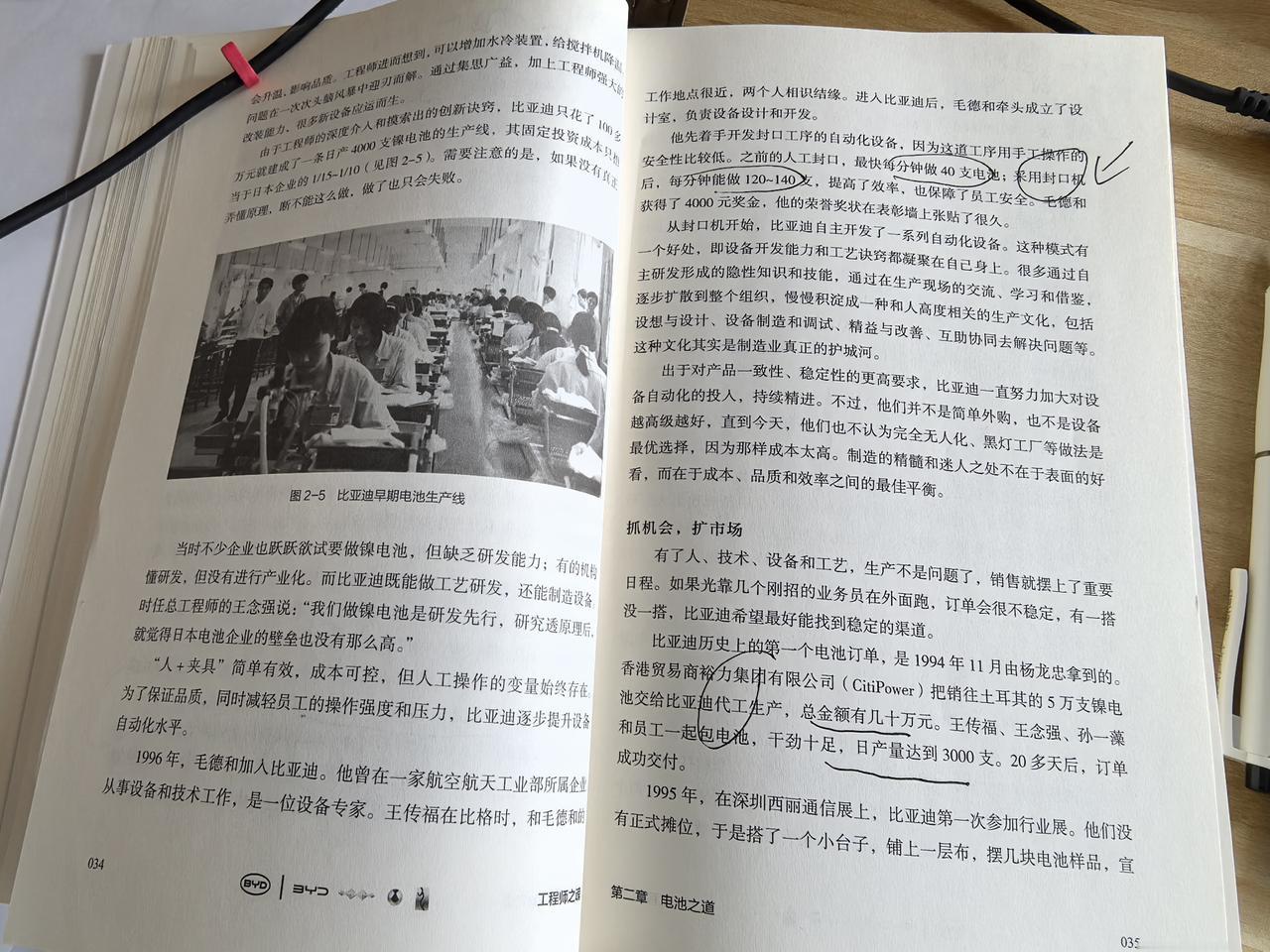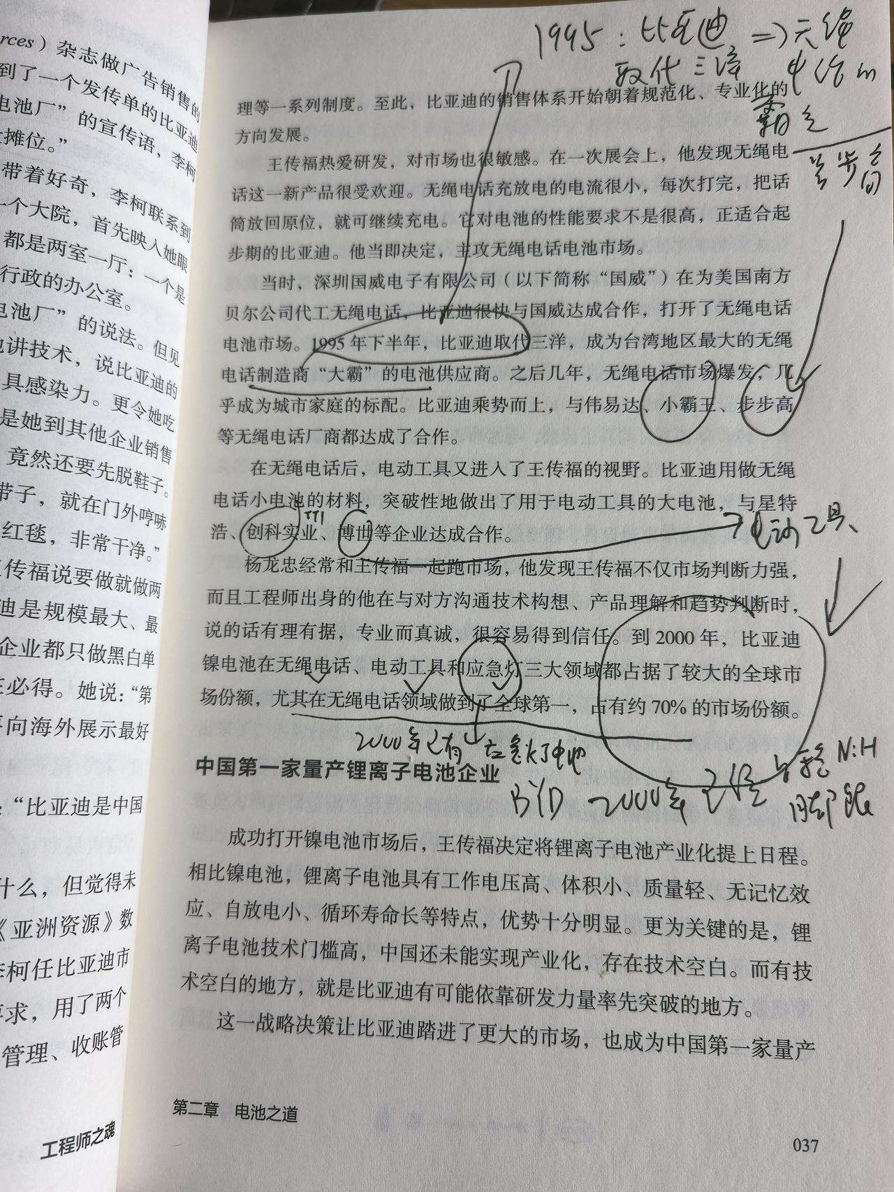 比亚迪30年前,就已经是卷王了。比亚迪在电动汽车领域,以价格横扫和规模放量的方式,重塑了全球汽车产业。很多人,对比亚迪的做法,感到难以理解。不过 如果翻看秦朔老师写的《工程师之魂》这本书,就会发现比亚迪此刻的表现,跟它30年前诞生的样子,其实并无差异。那个时候,还是小电池的时代。 首先是镍氢电池。比亚迪成立的1994年,一部大哥大手机3万元。充电电池大约500元,一部手机一般会备用一块电池。而主要供应商是松下和三洋。 比亚迪通过半自动化半人工的制造路线,大幅度地降低了电池的制造成本。它在公司成立的时候,日产量已经能达到3000支。而大量自研设备,包括封口机、搅拌机等,都给它带来巨大的成本优势。 1995年比亚迪的镍氢电池开始进入无绳电话,取代三洋。这是一个敏锐的市场发现。而随着步步高、小霸王的无绳电话开始爆发的时候,比亚迪已经抢占市场先机。技术人员如果还懂市场,那就是天下无敌。在供不应求的时代,技术应用型兼具用户敏感型的企业家,就会创造时代奇迹。比亚迪随后进入电动工具(例如中国电动工具明星创科实业TTI和老牌的德国博世),以及应急灯。 当时镍氢电池的主材料镍金属,价格很昂贵,每吨14万元。那么,减少镍的用量就是利润的保障。 1997年比亚迪开发出钢带拉浆的技术,使得负极材料从发泡镍转向镀镍的穿孔钢带。这样一支电池节省1元,成本就能下降12%。这种持续的技术改善,很容易保持下去。因此它乘胜追击,1999年将正极材料的发泡镍,也如法炮制进行更换。 可以说,比亚迪就是为降低电池制造成本而生。这必然会成为先行垄断者日本企业的杀手。 更大的反击战,是发生在锂电池。索尼在1991年就开始实现消费级锂离子电池。之后,连同三洋、松下,日本几乎主宰了这个电池市场。加上消费电子也是日本的强项,日本小电池几乎垄断了90%的市场。 比亚迪的出现,打破了这个垄断神话。手机的爆发,引燃了全球电池市场。而比亚迪就是贴着学习日本电池的技术的同时,大量自我改造,进行近距离进攻。在比亚迪,中央研究院的技术人员要求是日语需要熟练阅读日文文献。 1997的2G时代,1998年底2.7亿手机用户。面向手机,1997年比亚迪锂离子电池量产。国际价格10美元,比亚迪直接变成3美元。这种成本简直吊打日本电池。1998年日产5000支,而2000年日产量达到10万支。那是一个群情激荡的时代,伸手一把,空气里到处都有钱。 2000年比亚迪获得摩托罗拉的订单。对于锂电池560毫安时,日本索尼和日立报价为6美元,比亚迪是2美元。这自然获得摩托罗拉的青睐,而在一年多审厂过程,简直为比亚迪的工程师打开天眼。 比亚迪的自我修正速度,已经崭露头角。摩托罗拉审厂,第一天碰到的问题,第二天夹具就修改了。这种速度,让摩托罗拉总部深感震撼。这种速度,任何一个跨国企业在全球任何一个国家都不曾遇见过。 这是一个双方征服的过程。而对于比亚迪,摩托罗拉不仅仅意味着订单,更是带来了六西格玛质量体系的铺面春风。 有了摩托罗拉的信任,自然下一个要征服就是分头更猛的诺基亚。 2002年比亚迪镍电池全球排名靠前。而锂电池,则直逼三洋和索尼。后者生产成本4.9美元,而比亚迪只有2美元。中国电池制造,大概是30%的成本优势。这并非所谓劳动力的红利,这就是车间工程师红利。中国和日本电池的制造,本质上两种生产方式的对决。比亚迪充分利用了劳动力的低廉成本,但这并非全部。恰到好处的夹具,正好完成车间里的人机合一。诺基亚一开始对此完全不信任。电池加料,用勺子从浆料池里挖出来。而电池的卷绕,则是女工踩着缝纫机完成。这些都跟日本企业井井有条的机器生产,完全不同。 然而这正是对成本的理解方式不同。比亚迪土法上马的机器,正好跟柔性极好的劳动力大军,紧密的结合。这种成本,是日本制造体系所无法兼容的。 当比亚迪在2002年获得诺基亚的电池订单,也开始争取诺基亚手机的外壳代工制造。实际上,比亚迪已经开始围绕电池做周边结构件的开发。 比亚迪的电池连接件和电池保护芯片,都是从零件分厂,陆续升级为事业部。二者也分别发展为比亚迪的手机代工,与比亚迪电子两大业务集团。后者在比亚迪进入汽车制造领域,也顺势进入电机、电驱领域。而对于碳化硅功率器件的研究,也是水到渠成。 这就是比亚迪围绕核心产品的“周边制造”的基因。 自研设备、自造零部件,快速进化、低成本制胜。成立三十年来,比亚迪一直是这个样子。 有了这样的时间纵深,我们可以更好地理解中国企业高速发展的特性。在大出海时代,中国企业开始在更令人瞩目的战场,开始跟全球跨国公司竞争。中国招法其实没有变化。只是这一次,辽阔的海洋上出现了一批一群的兵团身影。供应链攻防战