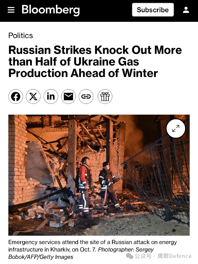 彭博社也报道称,俄军最近的空袭重点打击目标是乌克兰能源基础设施,其中,10月3日针对哈尔科夫和波尔塔瓦的大规模空袭,直接导致乌克兰大约60%的天然气产能被迫中断,迫使乌克兰花费19亿欧元进口燃料以度过即将到来的冬季。