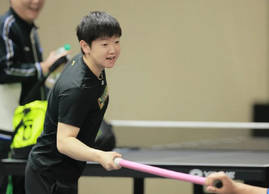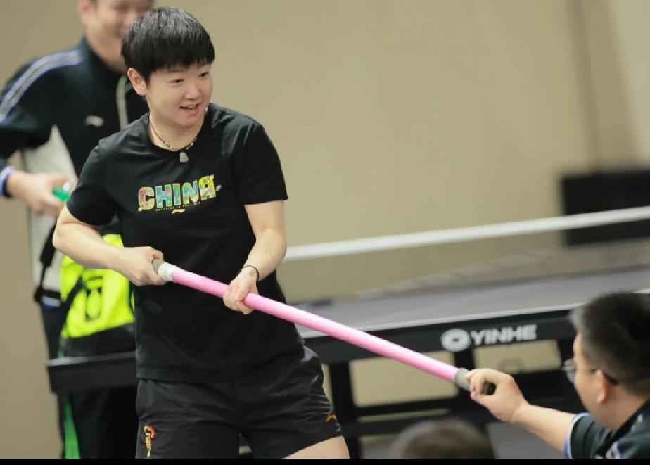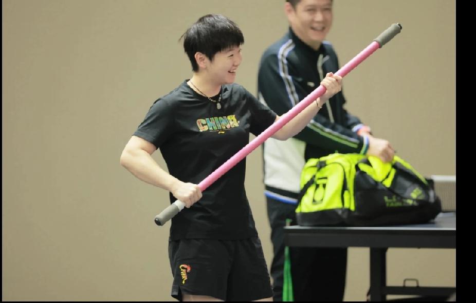 国乒团宠孙颖莎训练日常:“金箍棒”耍出欢乐范儿,邱贻可教练笑不拢嘴 训练馆里