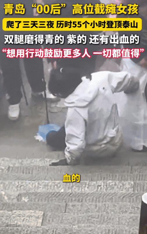 “这个女孩的毅力强得可怕!”国庆假期青岛00后女孩李子萱用三天三夜的时间干了一件轰动全网的大事,她拖着残疾的双腿历时55个小时成功登顶泰山!她也因此成为国内首位徒手爬上泰山的高位截瘫女孩! 2025年10月5日,青岛出租屋里,李子萱对着镜子缠护膝。膝盖上旧伤还没好,她又往里面加了层棉垫:“这次得护好,别磨破了。” 朋友发来消息劝她:“泰山6000多级台阶,你别逞强。”她回了张护具照片:“我想试试,用手爬也得上去。” 8岁那场车祸后,她的双腿再也站不起来,却总在梦里,看见自己站在山顶的样子。 10月3日凌晨,泰山红门入口,路灯还亮着。李子萱把轮椅停在旁边,双手撑着石阶慢慢起身。第一级台阶,她用手臂发力,把身体“搬”上去,腿磕在台阶上,疼得她皱了皱眉。 路过的游客停下脚步:“姑娘,要帮忙吗?”她摇头笑:“不用,我自己来。” 刚爬完50级,手臂就酸得发抖,她坐在台阶上,掏出手机看爸爸的照片——这是她第一次独自挑战这么难的事,想让爸爸“看见”。 爬到中天门时,已经是10月4日中午。太阳晒得石阶发烫,李子萱的手套磨出了洞,指尖渗出血丝。 有个老奶奶递来瓶水:“孩子,歇会儿吧,这么爬太遭罪了。”她接过水,拧瓶盖时手都在抖:“奶奶,我快到了。” 休息时,她翻出手机看网友的鼓励,有人说“我在山顶等你”,有人说“你比泰山还坚强”,这些话让她又有了力气。 起身时,她发现膝盖的护膝磨破了,血把裤子染了一小块,她悄悄把伤口盖住,继续往上爬。 10月6日深夜,十八盘的石阶又陡又窄。风刮得人站不稳,李子萱每爬一级,都要先把拐杖扎稳。手臂酸到快没知觉,她就用下巴顶着膝盖歇会儿,再接着爬。 有个大学生跟着她拍视频,拍到她摔倒时,赶紧伸手扶。她却笑着说:“没事,摔了再爬起来呗。” 那天晚上,她在台阶上睡了两个小时,裹着朋友送来的外套,梦里都是爬台阶的动作。 10月7日清晨,当第一缕阳光照在玉皇顶时,李子萱终于爬了上去。她坐在最高处的石阶上,看着云海翻涌,突然哭了,55个小时,6000多级台阶,她真的做到了。 有游客帮她拍照,照片里她笑得灿烂,磨破的手套放在旁边,像一枚勋章。她在社交平台发了张照片,配文:“爸爸,我到山顶了,这里的风景真好看。” 现在,李子萱的护膝和手套,被放在了青岛的残疾人励志展馆里。每天都有游客来参观,听她爬泰山的故事。 她还开了个短视频账号,分享自己的日常,教其他残障朋友怎么用辅助工具出门。有次粉丝问她:“下次还想挑战什么?” 她笑着说:“想试试爬黄山,听说那里的云海也很美。”周末时,她会去公园教小朋友画画,告诉他们:“不管遇到什么困难,只要不放弃,就一定能做到。” 上个月,有个双腿残疾的小姑娘找到她,说也想爬泰山。李子萱帮她制定了计划,还陪她练了半个月手臂力量。 如今再提起爬泰山的经历,她总会摸着膝盖上的疤痕:“那些疼都值得,因为它让我知道,我的人生,不止有轮椅这么小的世界。” 信息来源:澎湃新闻 2025-10-9