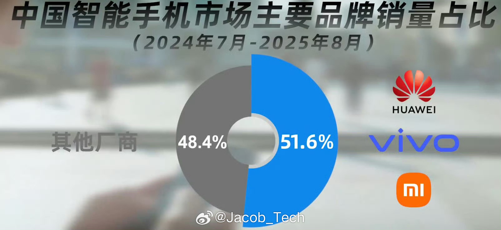 这几年华为、vivo、小米可以说抢了不少前老大哥苹果的市场份额,vivo在24年还拿下了第一、华为紧随其后[酷]
