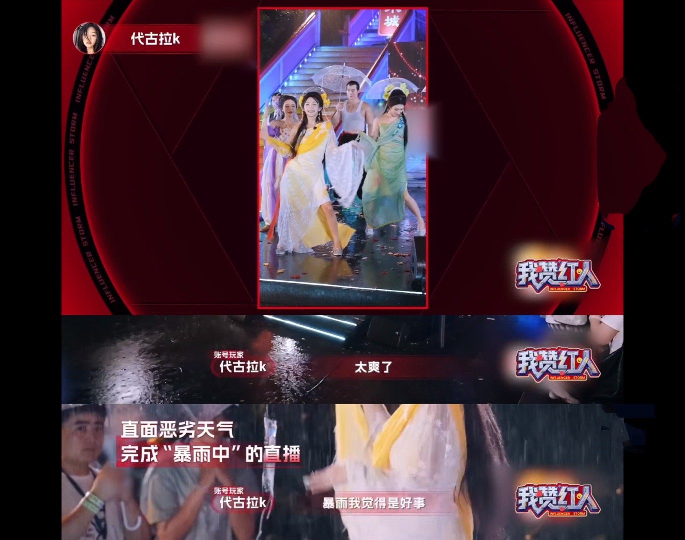 网红为了比赛有多拼《我赞红人》总决赛暴雨突袭反而更燃!代古拉k淋成落汤鸡还坚持