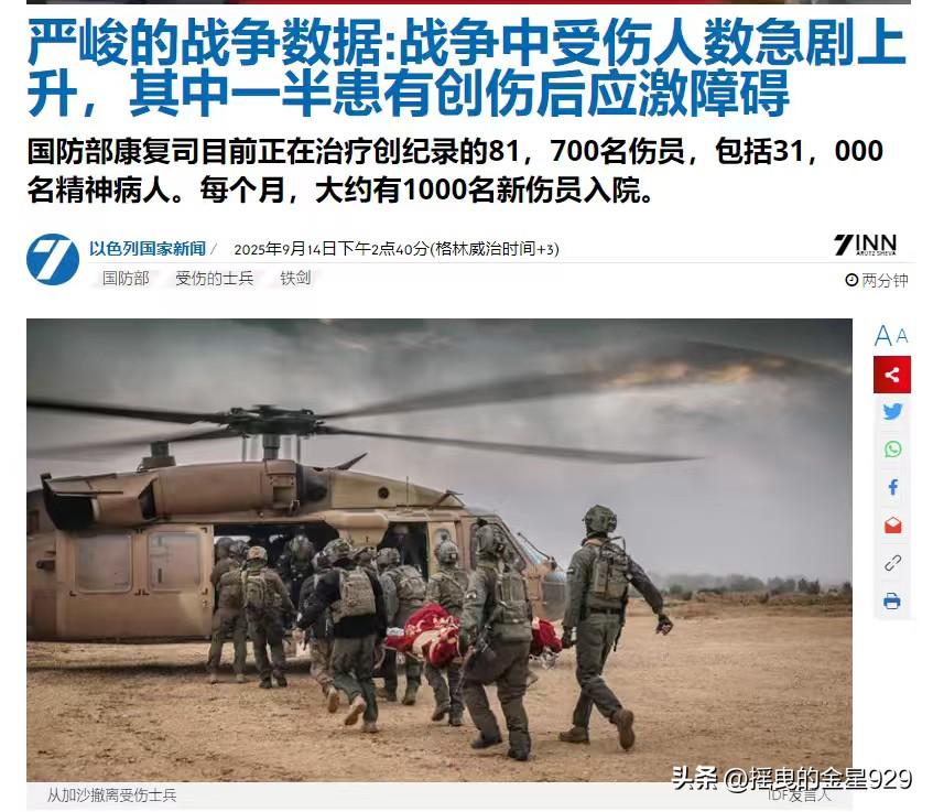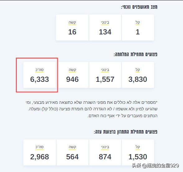 以色列士兵伤20000多?以色列国防军发言人埃菲·达弗林在昨天的讲话中公开表示缅怀在加沙战争以及同时期其它战争中受伤的20000名以色列士兵。 与此同时,在刊登其讲话视频与演讲稿的以色列国防军官网上,其官方公布的伤兵数据依然只有6333人。 然而,据以色列国家新闻网9月14日的报道,以色列国防部康复司宣布的伤残军人数据可能是更接近真实数字的。