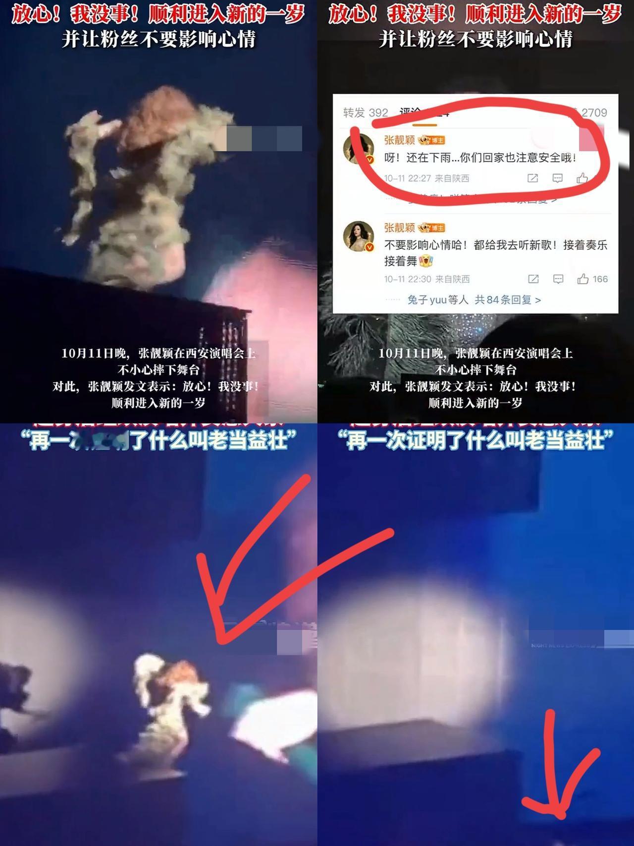 张靓颖这一摔, 摔出了太多的事情来! 1.张靓颖认真工作的态度值得表扬。她舞台上