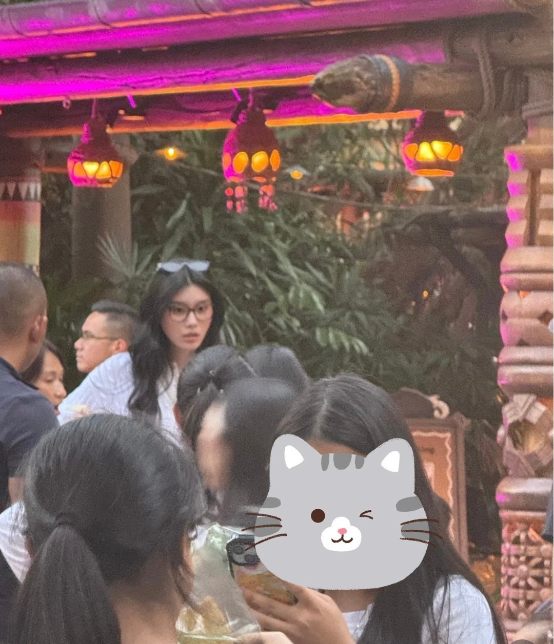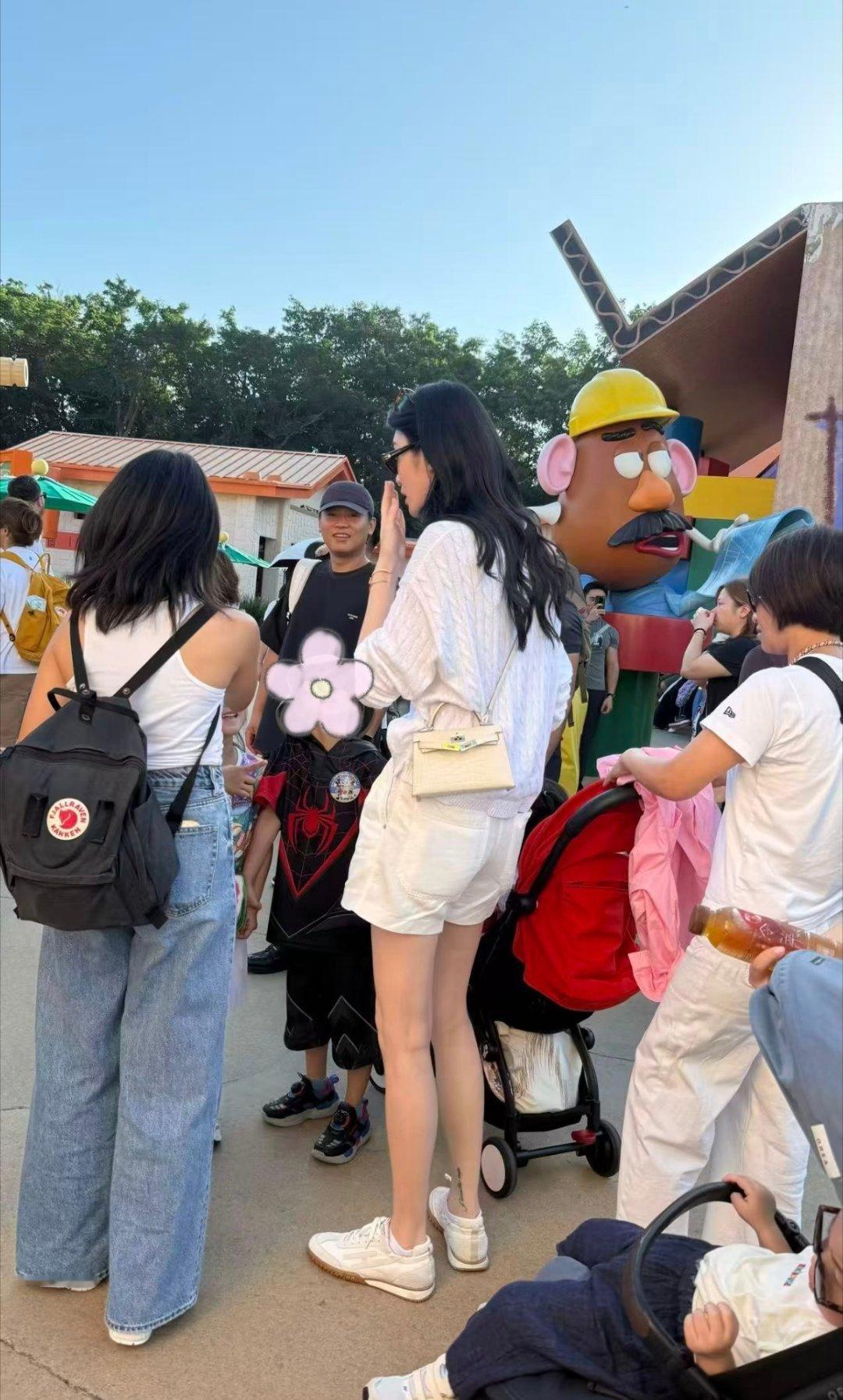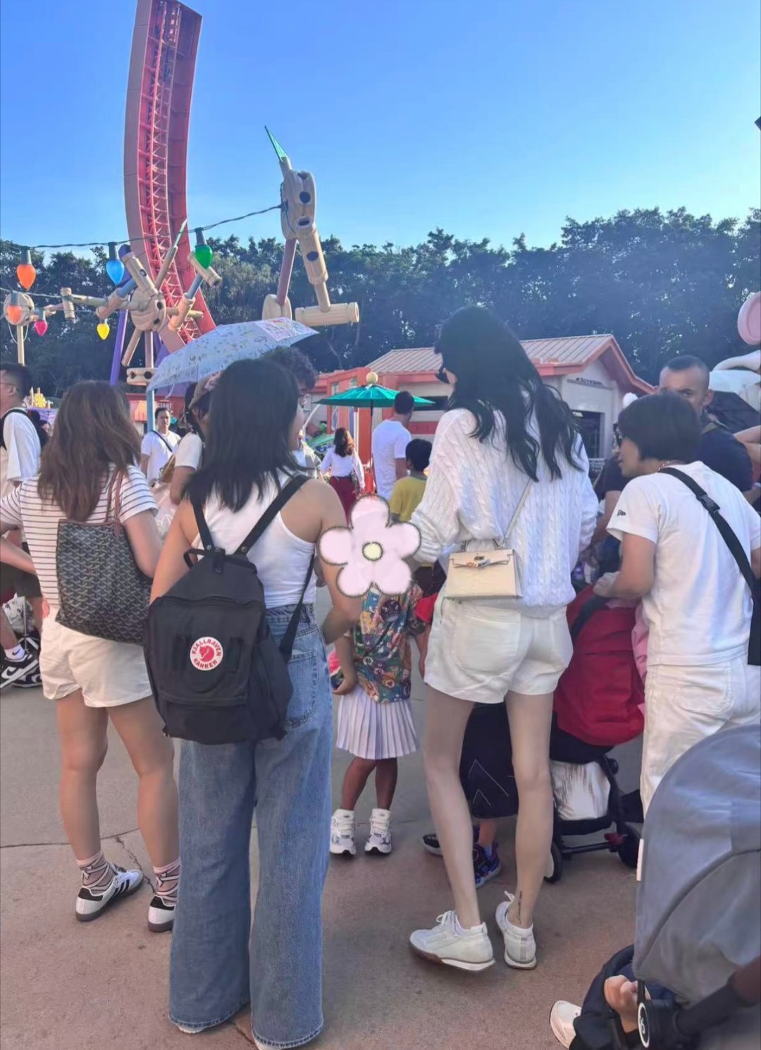奚梦瑶带儿女在港迪游玩被偶遇,果然,这种顶级有钱人出门游玩保镖也都是跟着的。