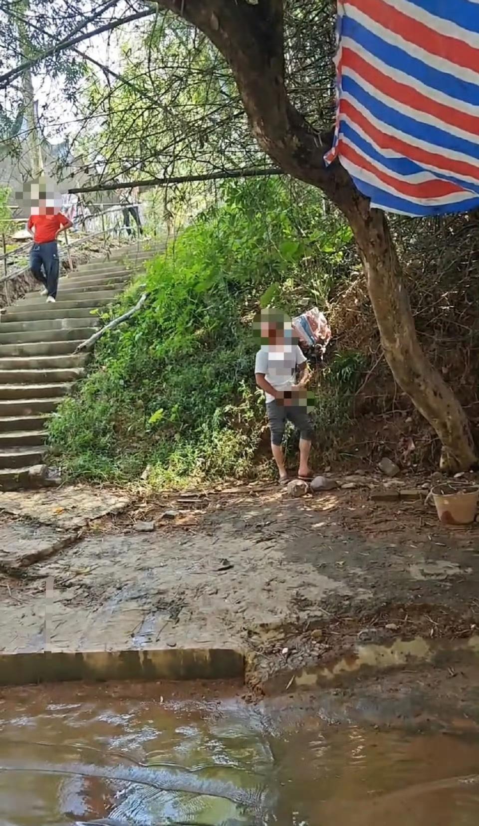【玉林沙田一户外玩水地男子在岸边小便】 10月11日,有网友看见