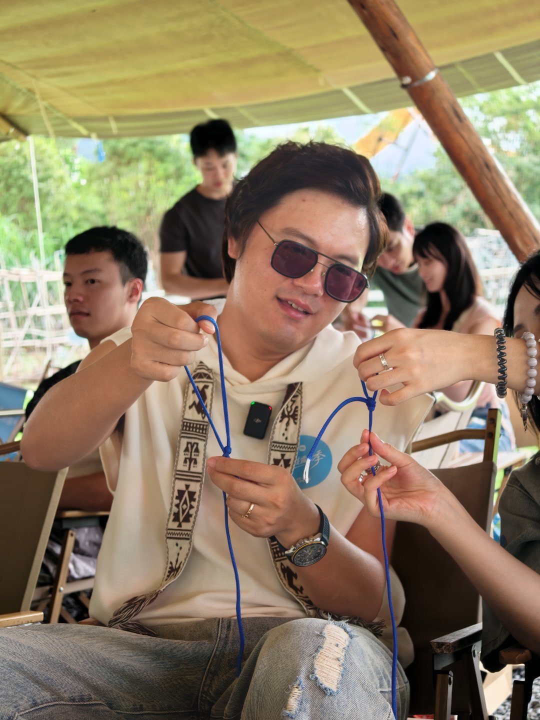 这两个手残,来学打绳结。