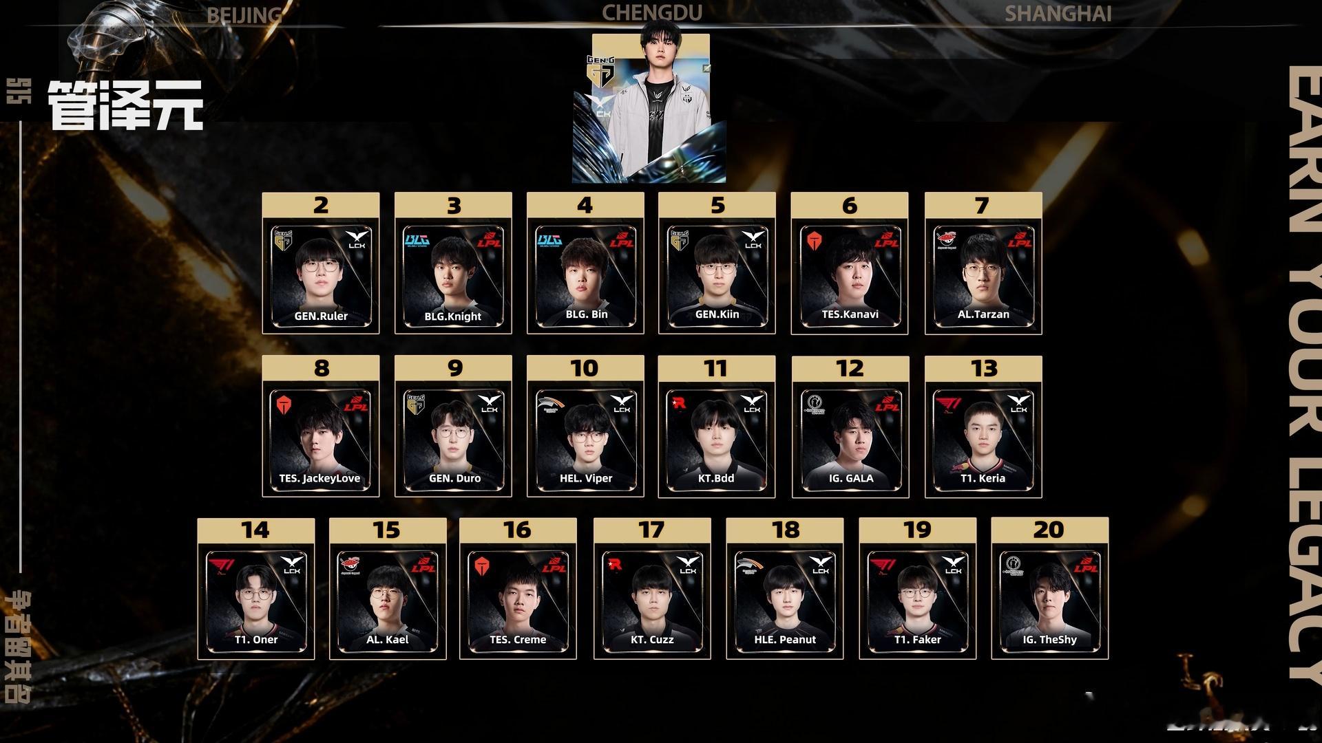 S15世界赛Top20大米和管泽元分别列出了他们心中本次英雄联盟全球总决赛的T