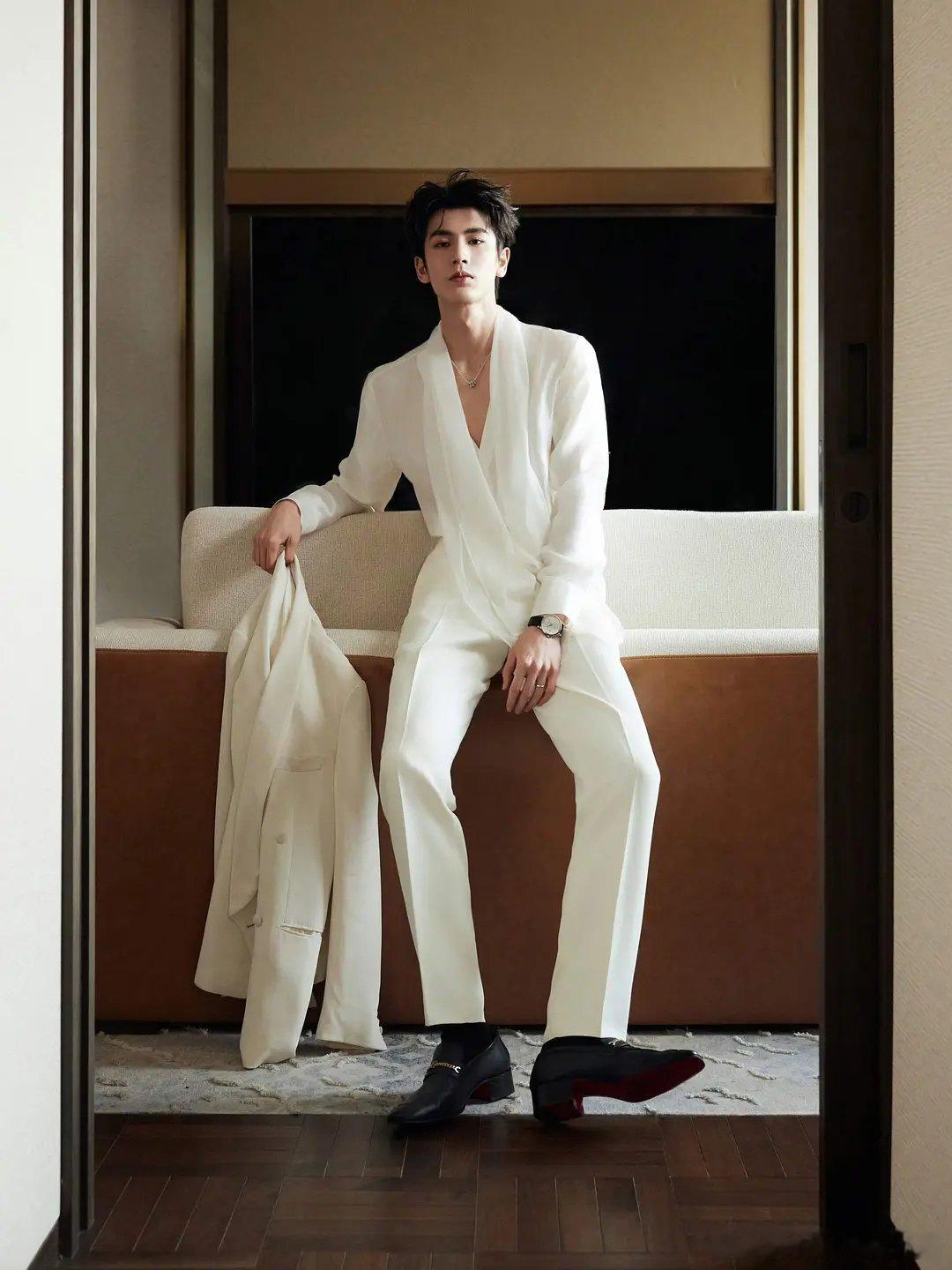 张凌赫今晚直播活动造型出图,人比花娇,全白套装这个腿无敌了,上身还是透视的🥵🥵