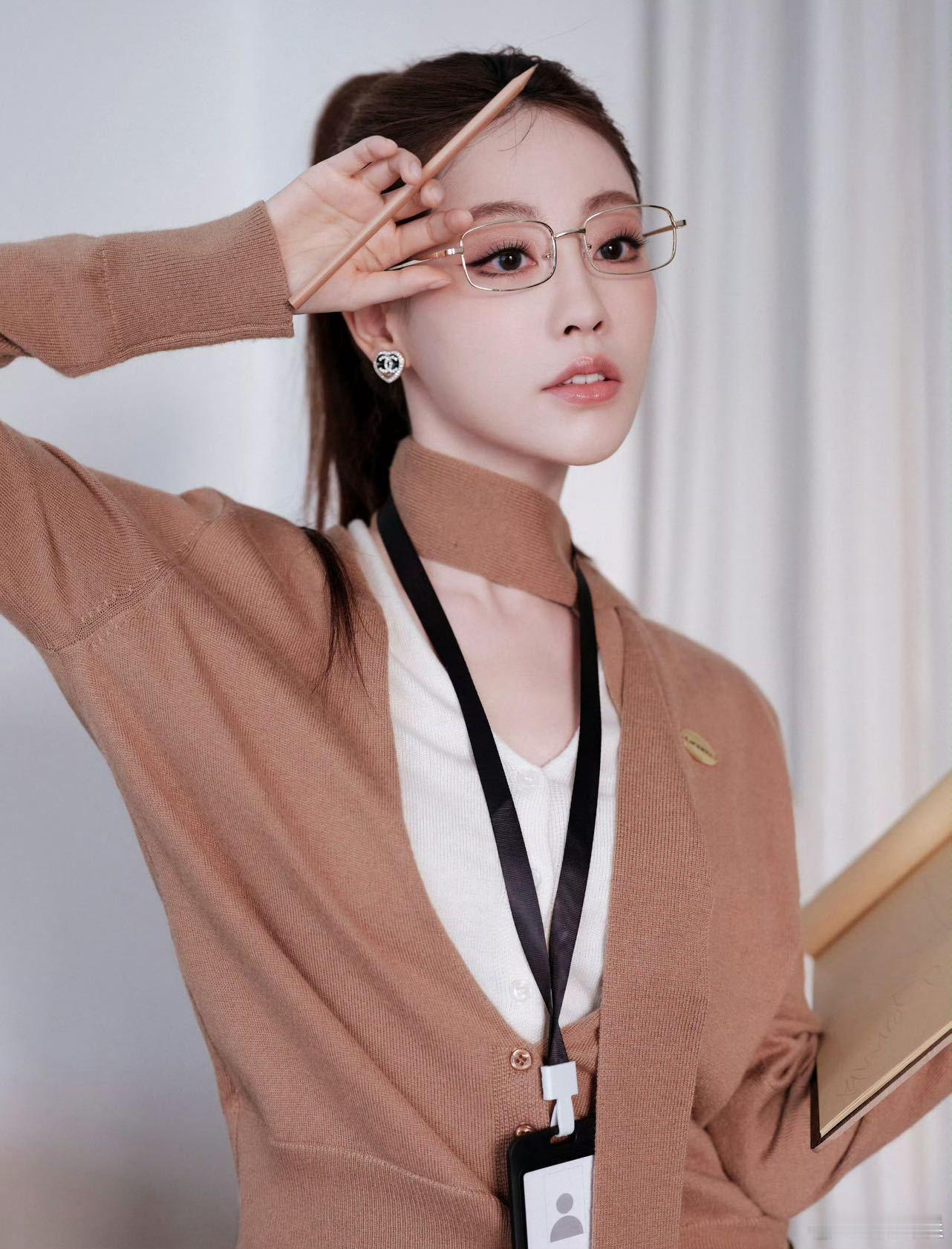 祝绪丹金丝眼镜高智感 被祝绪丹戴金丝眼镜的样子狠狠戳中!姐姐的美貌太震撼,眼镜一戴气场全开,妥妥的高智感美人。美拉德色系搭配颈间丝带,这魅力谁能顶得住,直接被征服!
