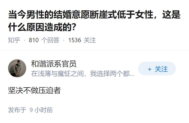 当今男性的结婚意愿断崖式低于女性,这是什么原因造成的?