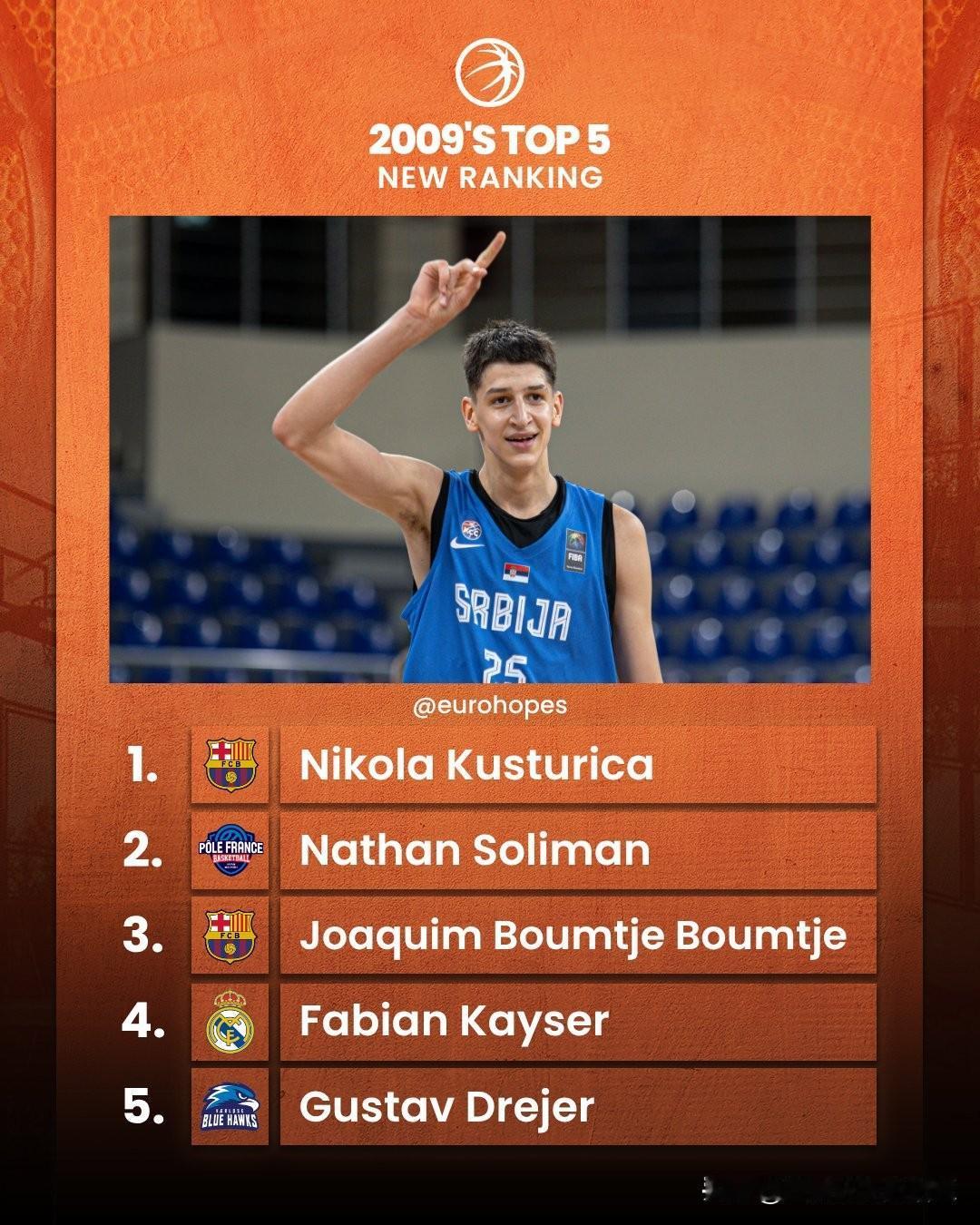 塞尔维亚侧翼Nikola Kusturica成为巴塞罗那俱乐部征战西班牙ACB联赛最年轻的球员,年仅16岁5个月零12天,被认为是欧洲2009级的顶尖球员,身高6-8=203,今夏帮助塞尔维亚夺得U16欧青赛A组冠军并且荣获MVP,赛事场均得到20.0分7.7篮板3.4助攻2.1抢断1.6盖帽。