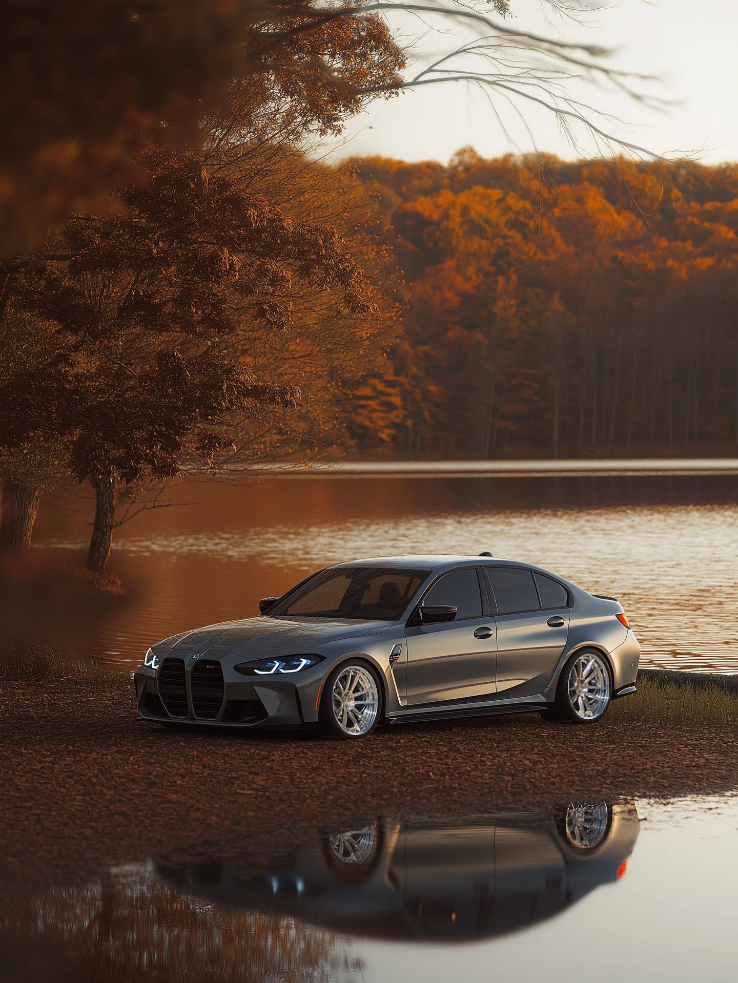 湖边的M3,大尺寸轮毂闪着冷光。静止,也抑制不住锋芒。bmwsky[超话] 宝马m3