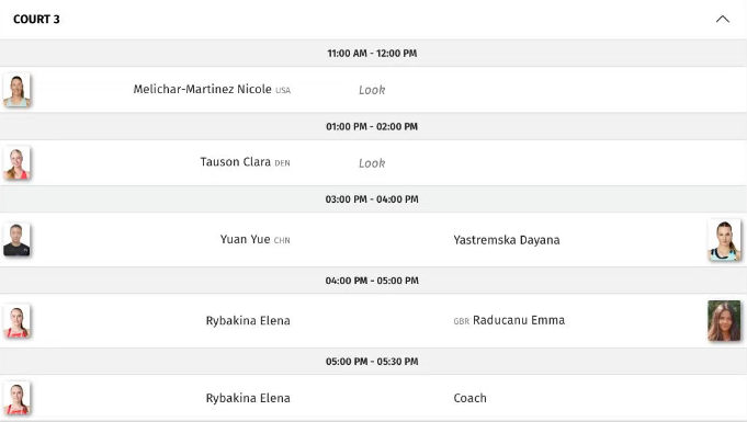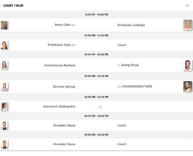 莱巴金娜和拉杜卡努下午4-5点在3号球场训练!