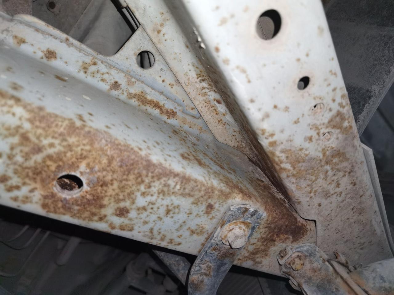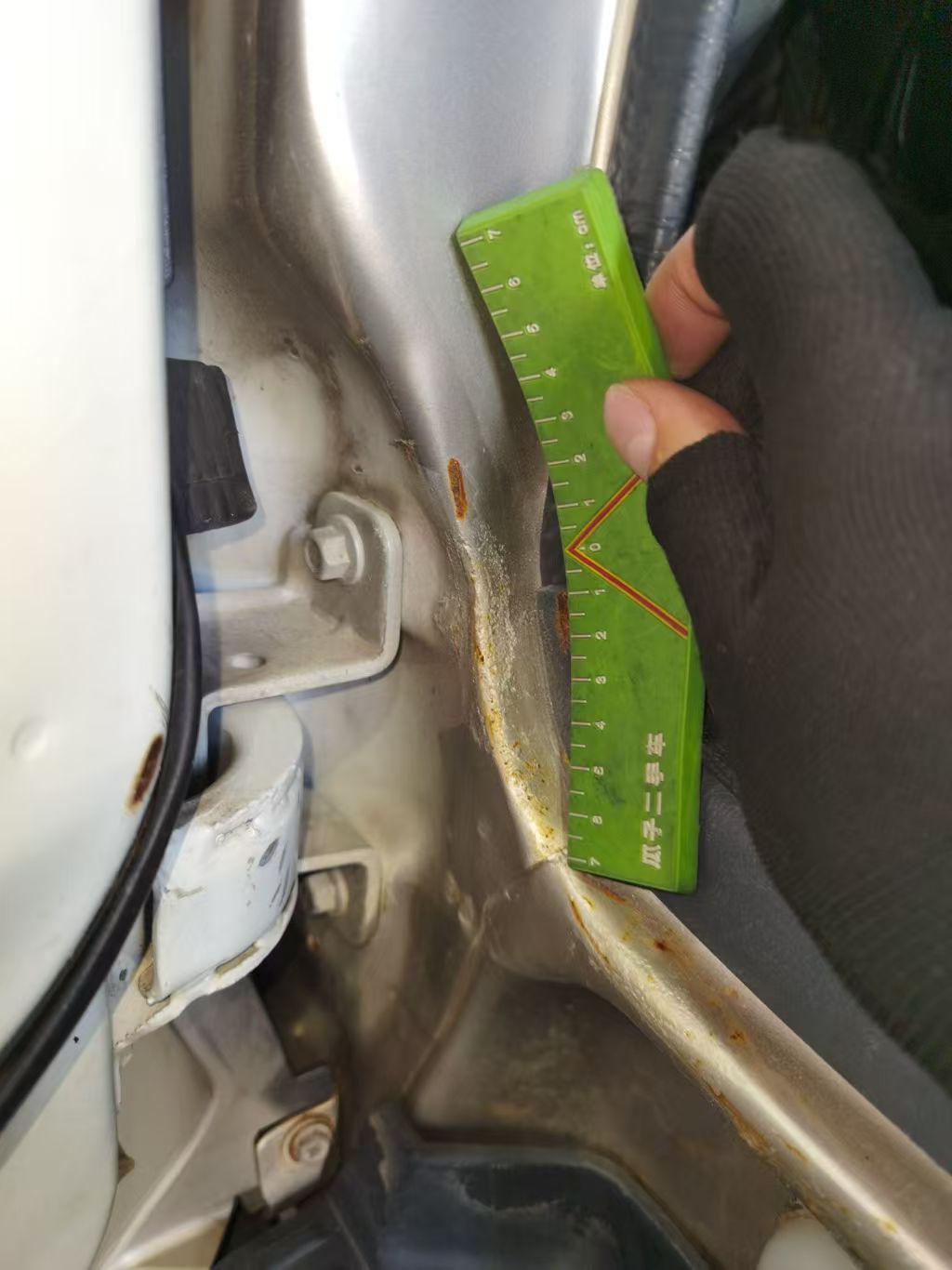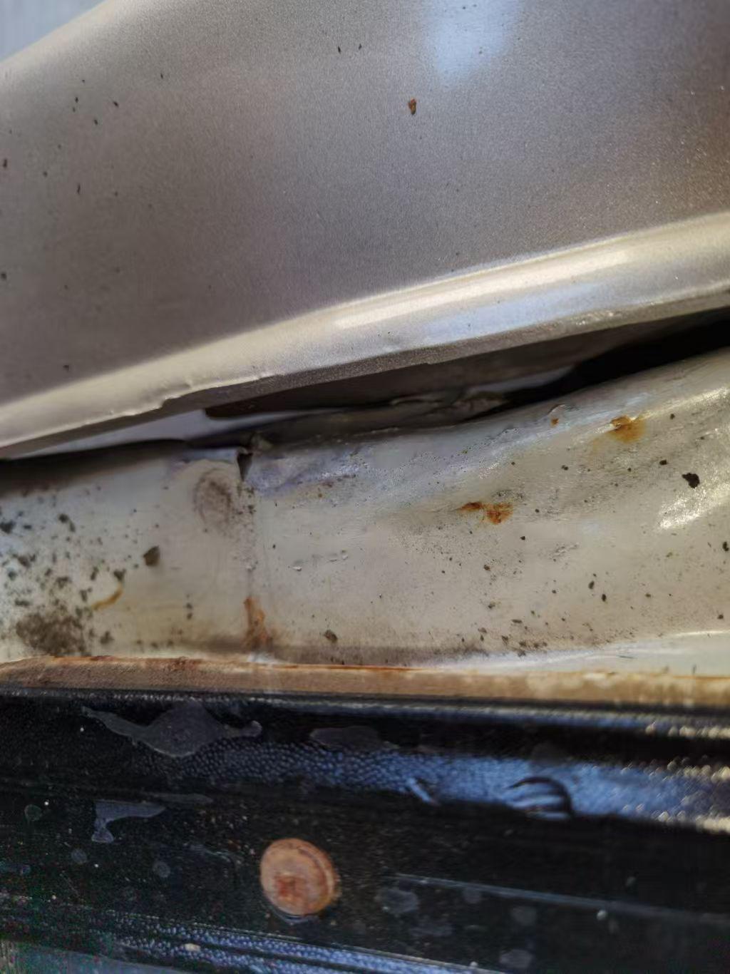 2万块的九座大面包,我怕开着开着散架了! 前两天验了一台九座大面包,厦门金龙出的金威2.0手动,2016年9月上牌,表显6万多公里,当初新车买下来7万-8万,现在二手只要2万块! 这么大的车,买回去肯定有重要的作用,不管是拉人还是拉货,机械故障和安全保障方面应该有所要求,验车必须安排。 然而,结果不太好,围着车一瞅就感觉不对,整车都喷过漆,光泽度看着就不均匀;关键在于,整个车架很多地方开裂生锈,还有三处结构损伤,左侧A柱里口变形生锈;后围板切割,接缝处都不平整;右侧底边梁也切割了,修复的印子清清楚楚; 事故车无疑,跑的速度快了,都怕散架了!但是还有惊喜,掀开内饰地毯,底下全是泥沙,金属部件生锈特别严重,一捏地毯都能感觉到潮气,这是进水了!还好下面没什么电路线束,车的配置很低。 按理说,工具车,能跑能动就行,但现在人的安全意识都提高了,消费意识也提高了,2万买这辆事故涉水车,不能吃这个亏!