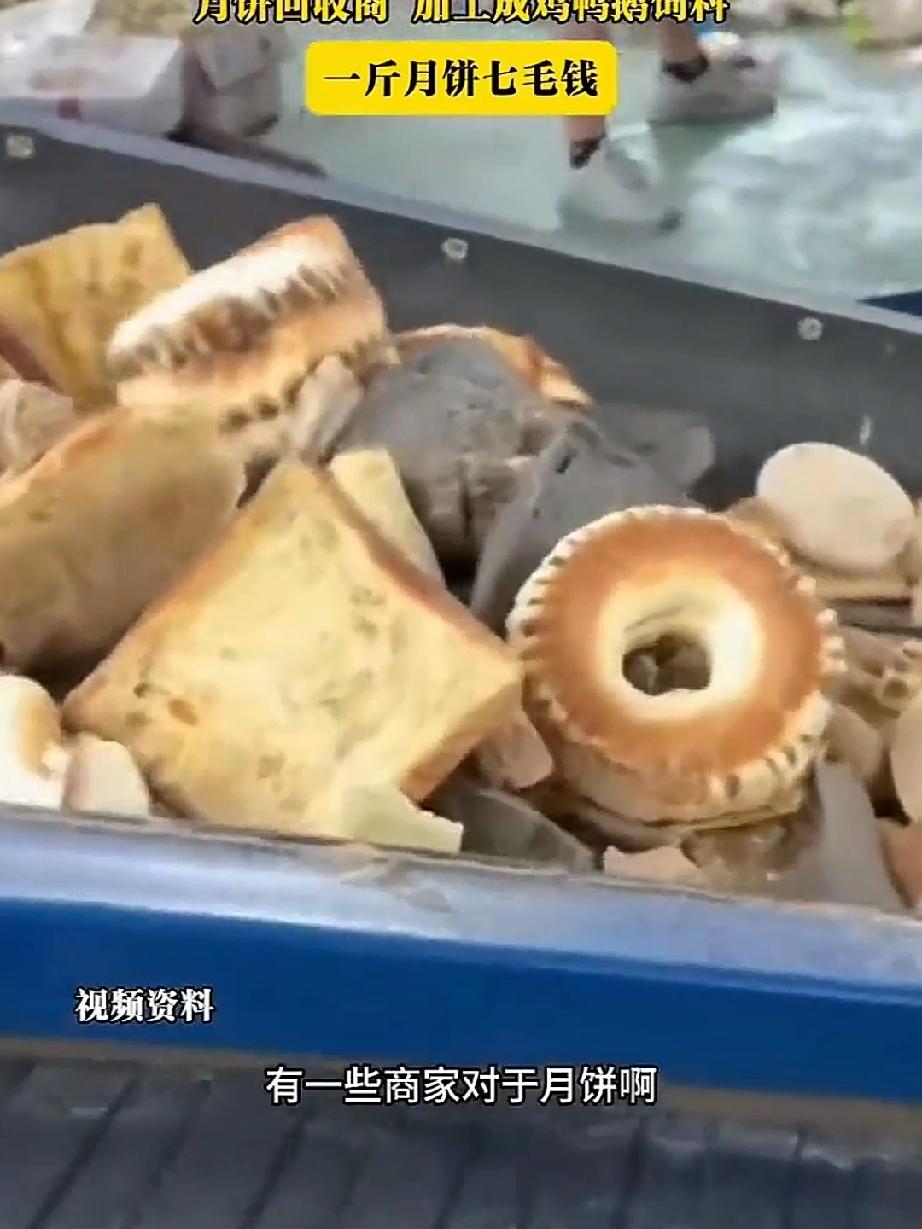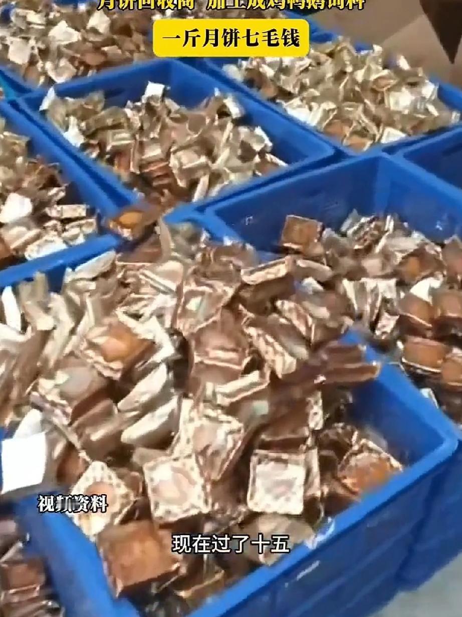 中秋过后月饼都去哪了? 看了视频才知道,月饼原来到了这个地方,中秋过后成山满垛的月饼被回收商以7毛一斤的价格收回,然后被加工成鸡鸭鹅的饲料再卖掉,这么多月饼当废处理料太可惜了,在农村集市上卖1.5元一块也好卖,中秋之前那几天太贵,最便宜的2.5元一块买的人也不算太多主要太甜不好吃,月饼突然消失不见原来被加工成饲料处理了!