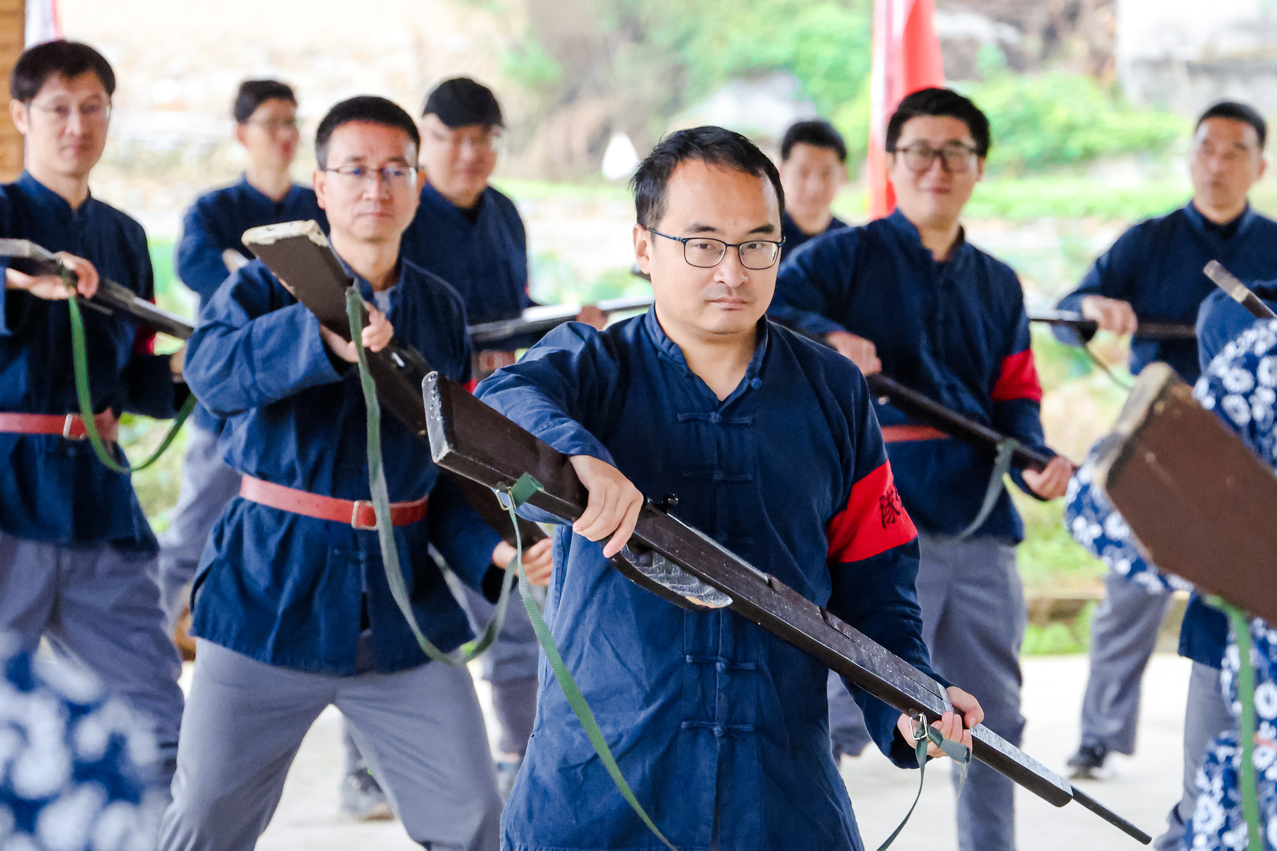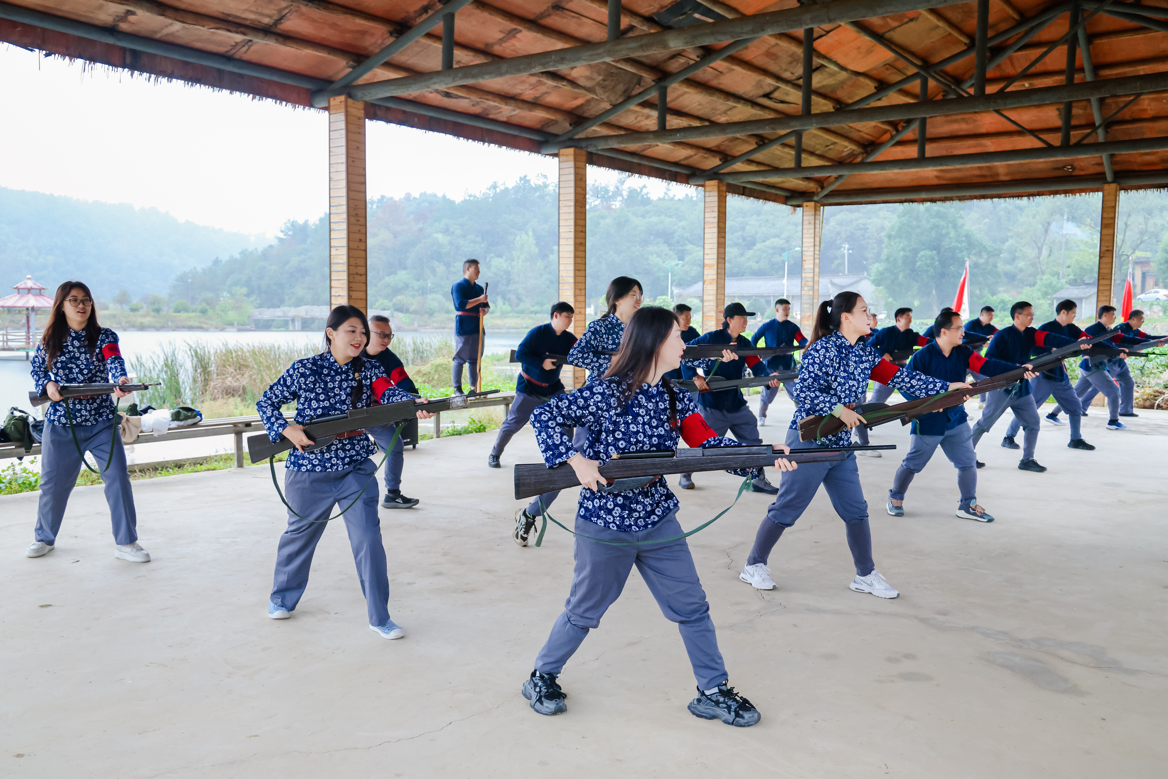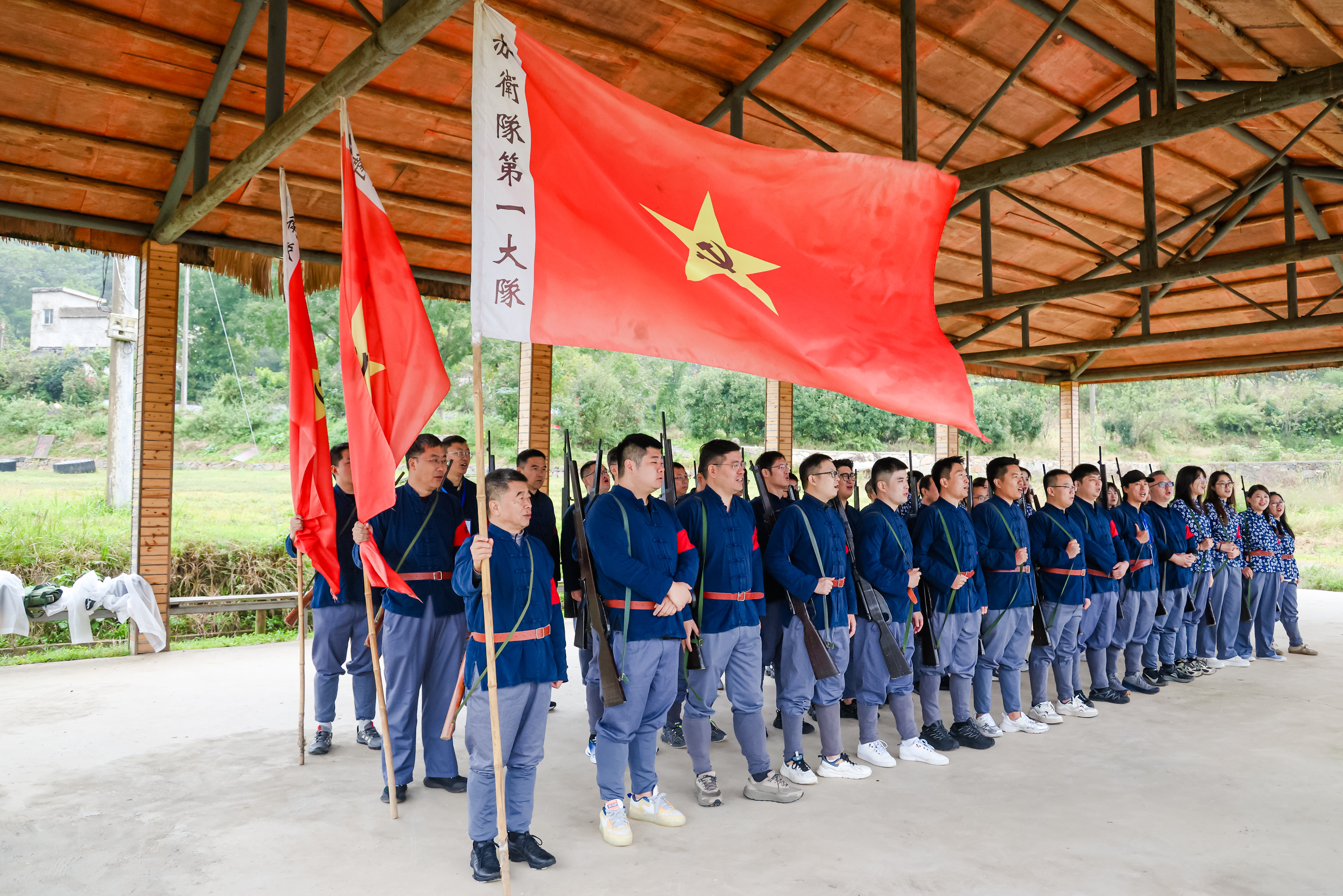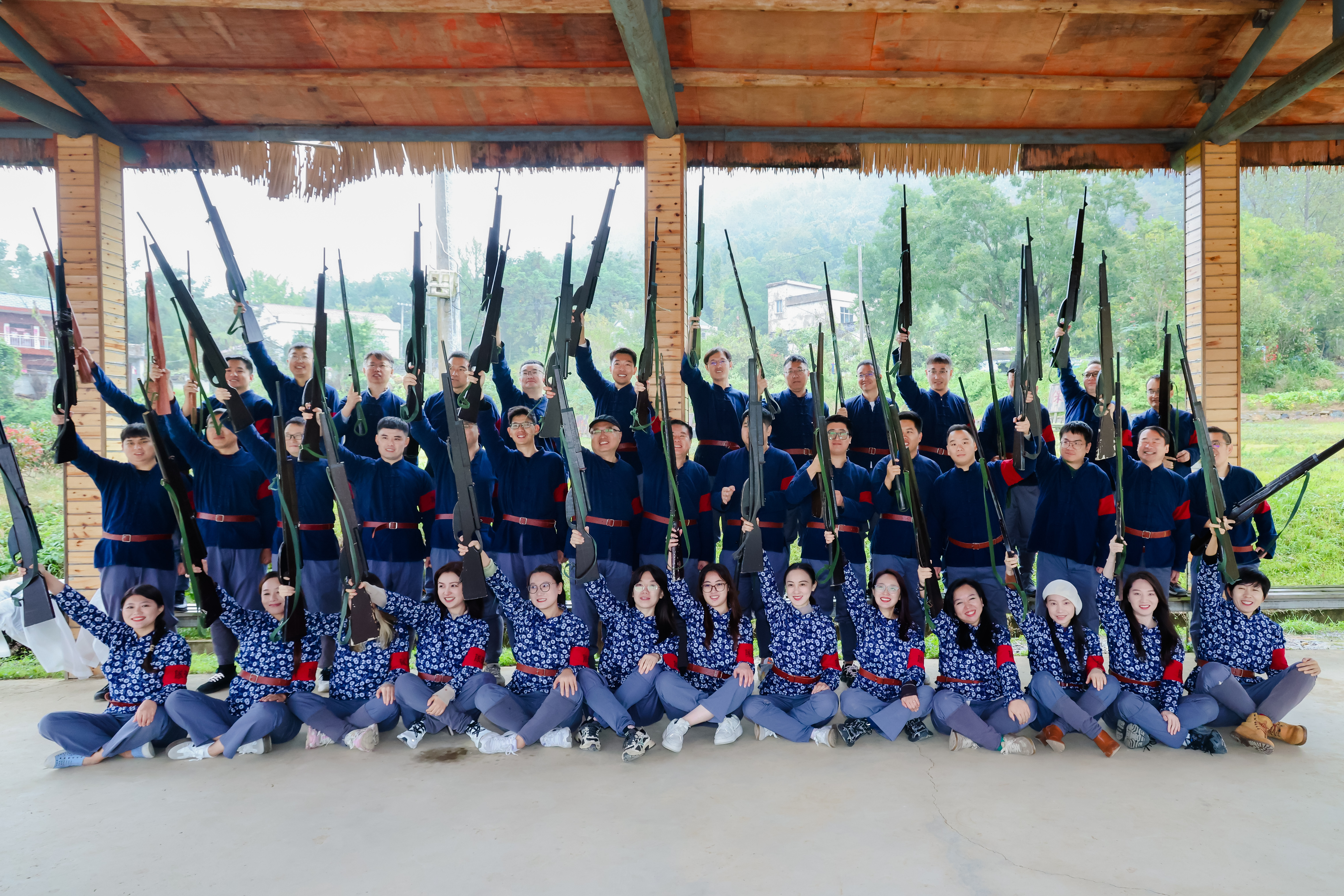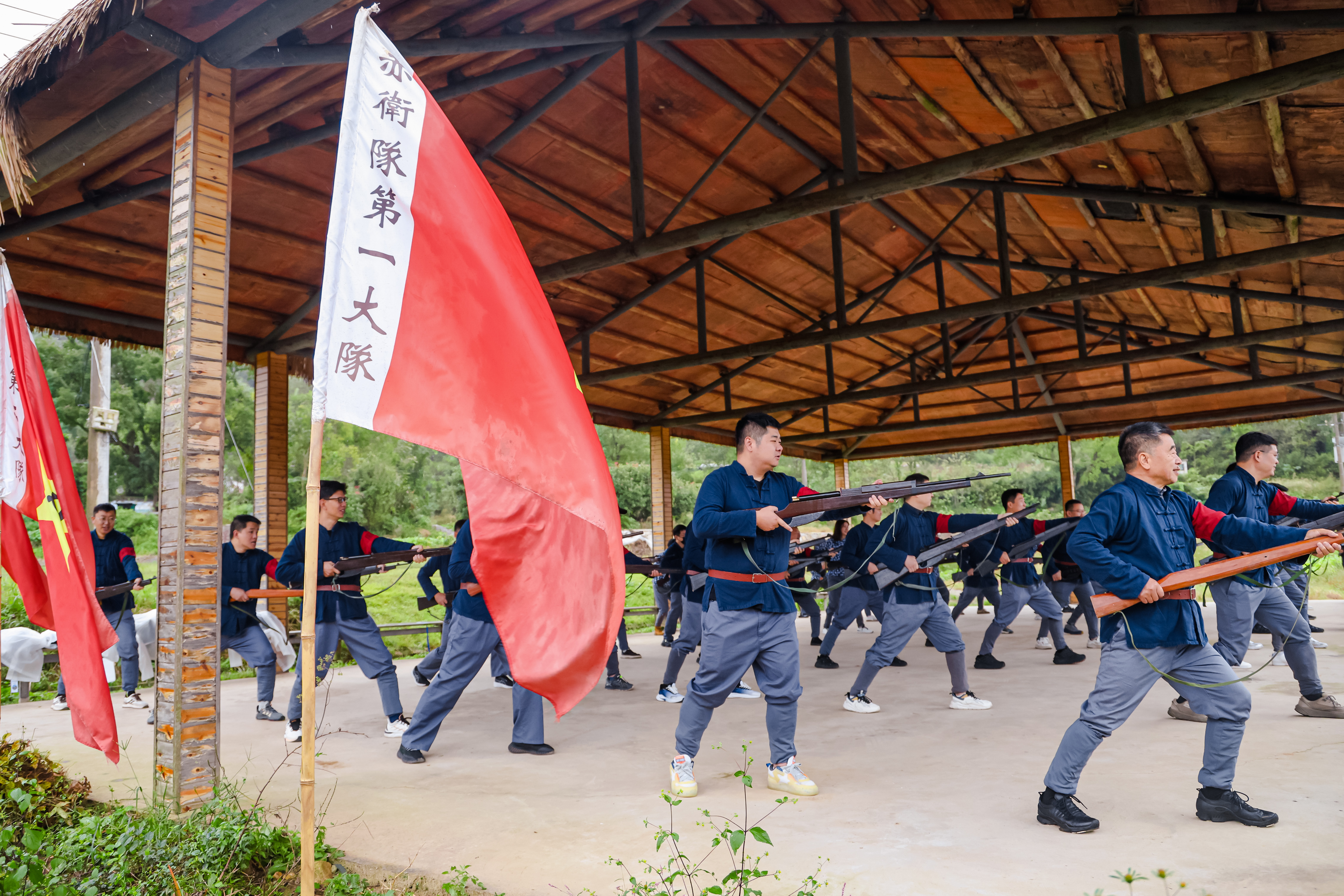 唱了红歌,吃了柴火地锅饭菜,扛着长枪,穿了赤卫队的军装,锻炼了拼刺枪法。。。