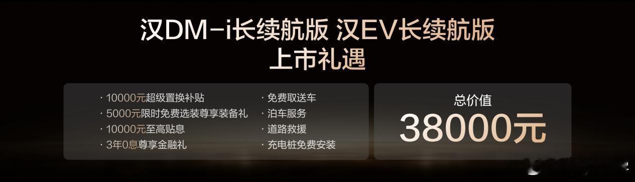 新车聚焦美学、舒享、生态、智能、安全、效能六大维度豪华进阶。动力美学进阶彰显百万实力,汉DM-i长续航版纯电续航提升至245公里,亏电油耗仅3.44L/100km,汉EV长续航版百公里电耗更低至10.6kW·h。