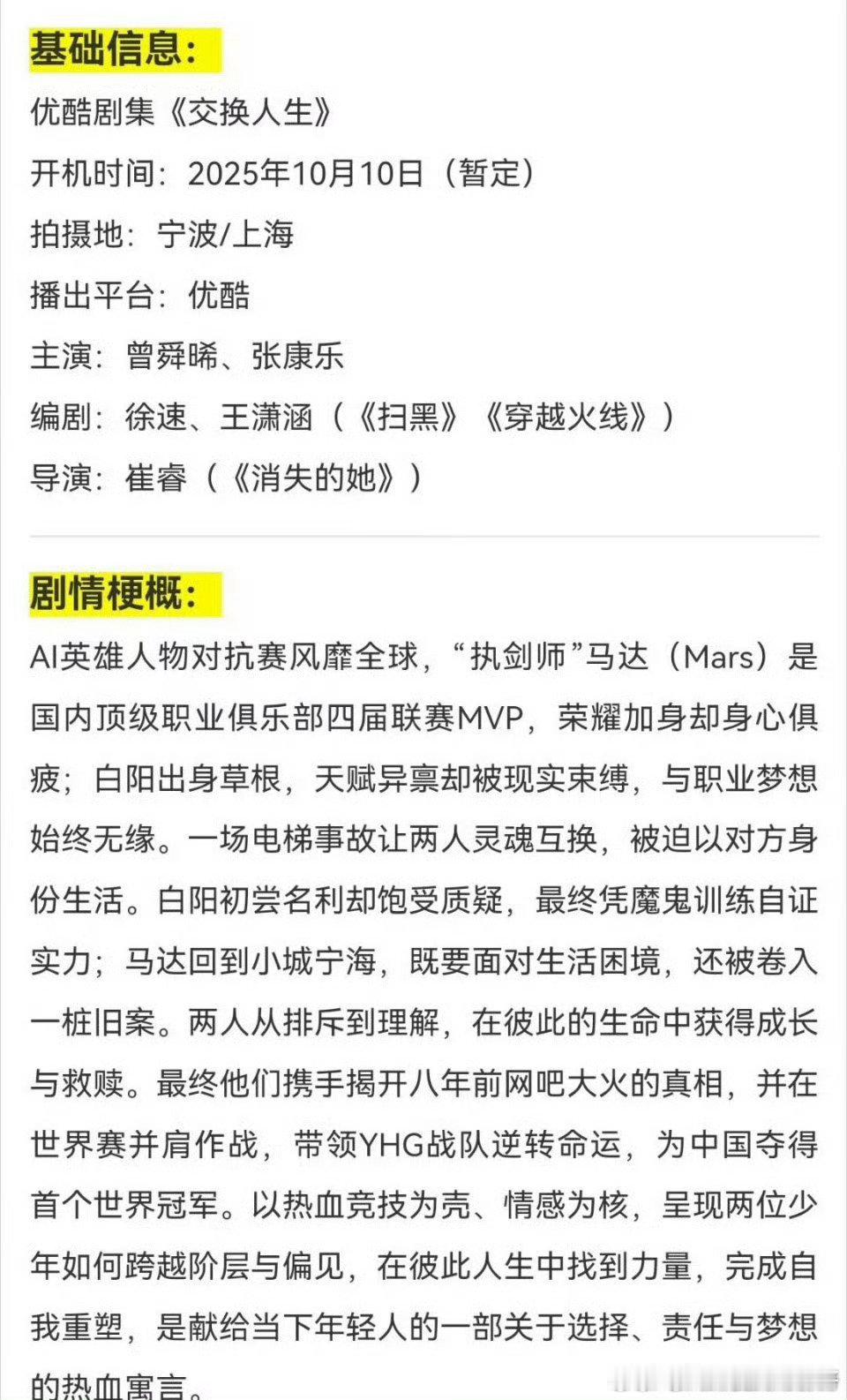曾舜晞、张康乐《交换人生》开通官微,即将开机