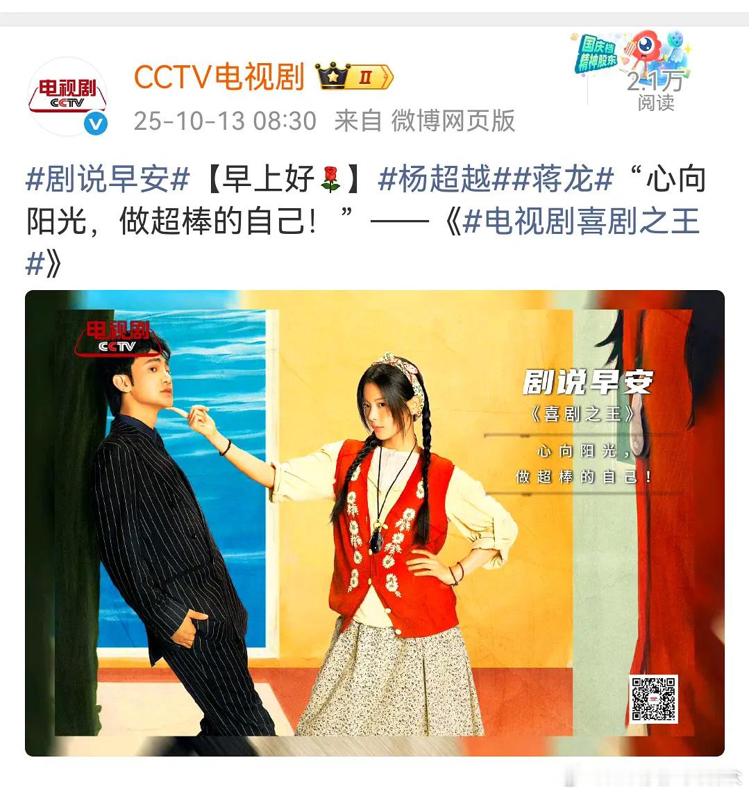 杨超越和蒋龙都有央8黄金档的热播剧:《如果奔跑是我的人生》和《狗剩快跑》,能上央8黄金档的年轻小🌸也是屈指可数