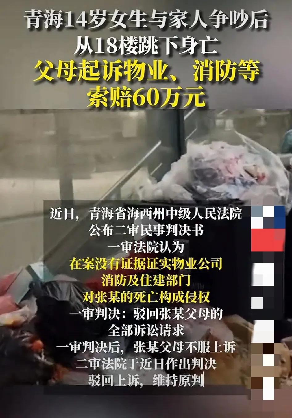 父母起诉物业等被驳回 14岁小女孩花骨朵一样的年纪,确实让人唏嘘不已!但是,白发人送黑发人,悲痛欲绝呀。这起案件确实令人痛心,也引发了关于责任归属的讨论。 据报道,14岁少女因家庭矛盾(与父母争吵)选择极端方式结束生命;事发住宅楼存在可通过的公共走廊窗户。 再有,父母起诉物业未尽安全保障义务,同时质疑消防设施(如气垫)铺设不及时。 另外,法院直接因果关系不成立,法院认定悲剧主因是家庭教育矛盾,物业设施非直接诱因;经查18楼窗户高度符合国家标准(通常≥1.1米),物业无设计过失;消防部门接警后6分钟到达,符合规定响应时间。 总之,这个案件凸显青春期心理疏导的重要性;争吵时的情绪管理值得反思;物业责任不应无限扩大,需平衡功能性与防护性。
