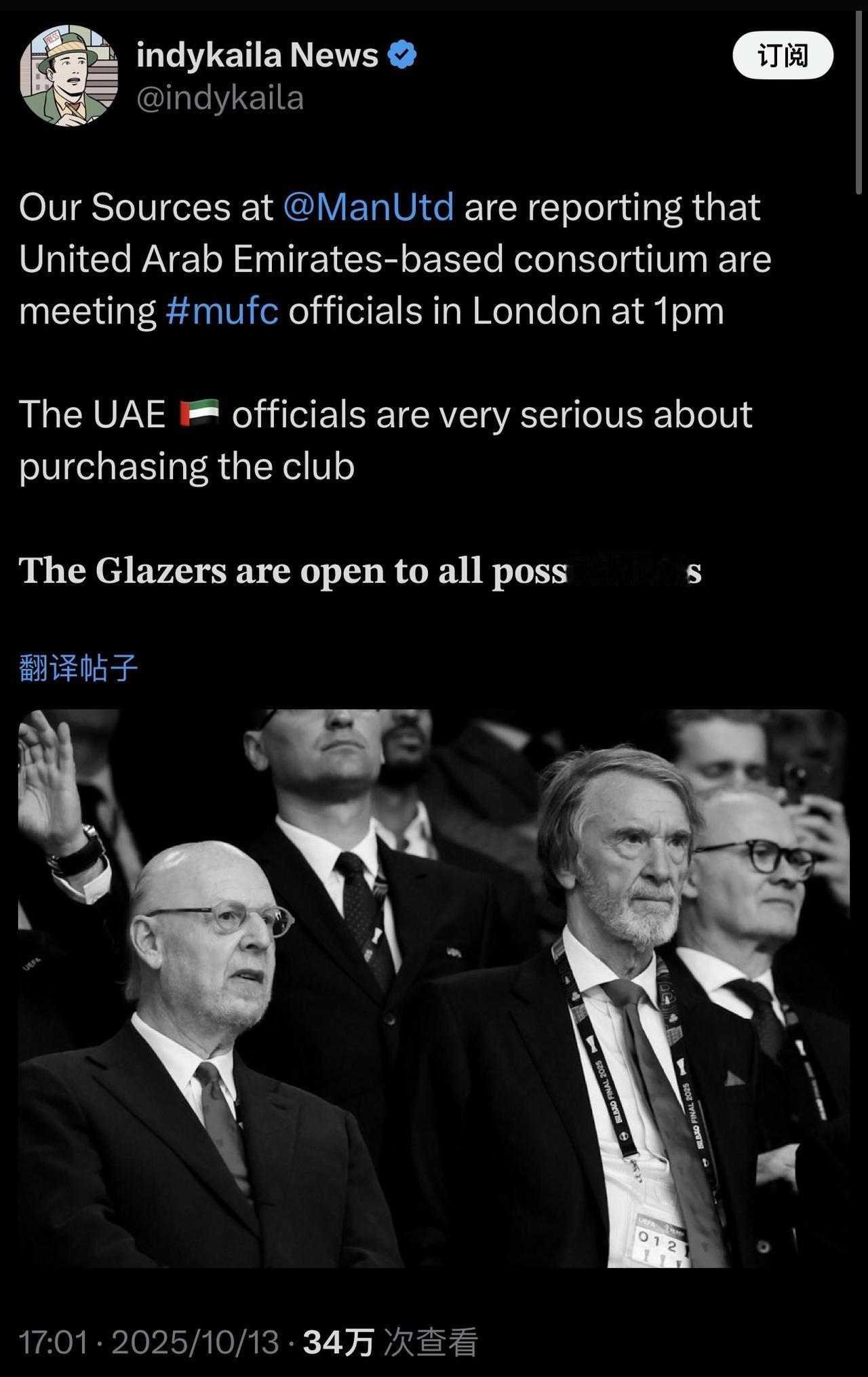 我以为收购消息都是媒体瞎编的[捂脸] 现在感觉有点真买的意思啊! 🔴绿帽哥的曼联内线消息称,总部位于阿联酋的财团将于下午 1 点在伦敦与曼联官员会面 🔴阿联酋🇦🇪官员非常认真地考虑购买该俱乐部