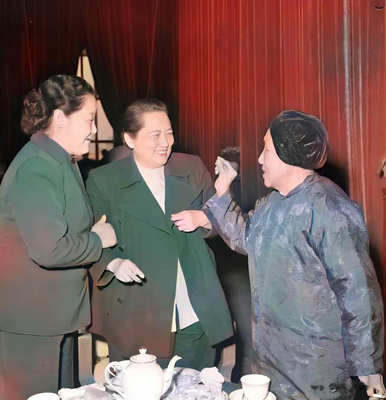 照片中的这三个女人,除了站在中间的宋庆龄之外,其他两位还是有点看不准是谁。有人说
