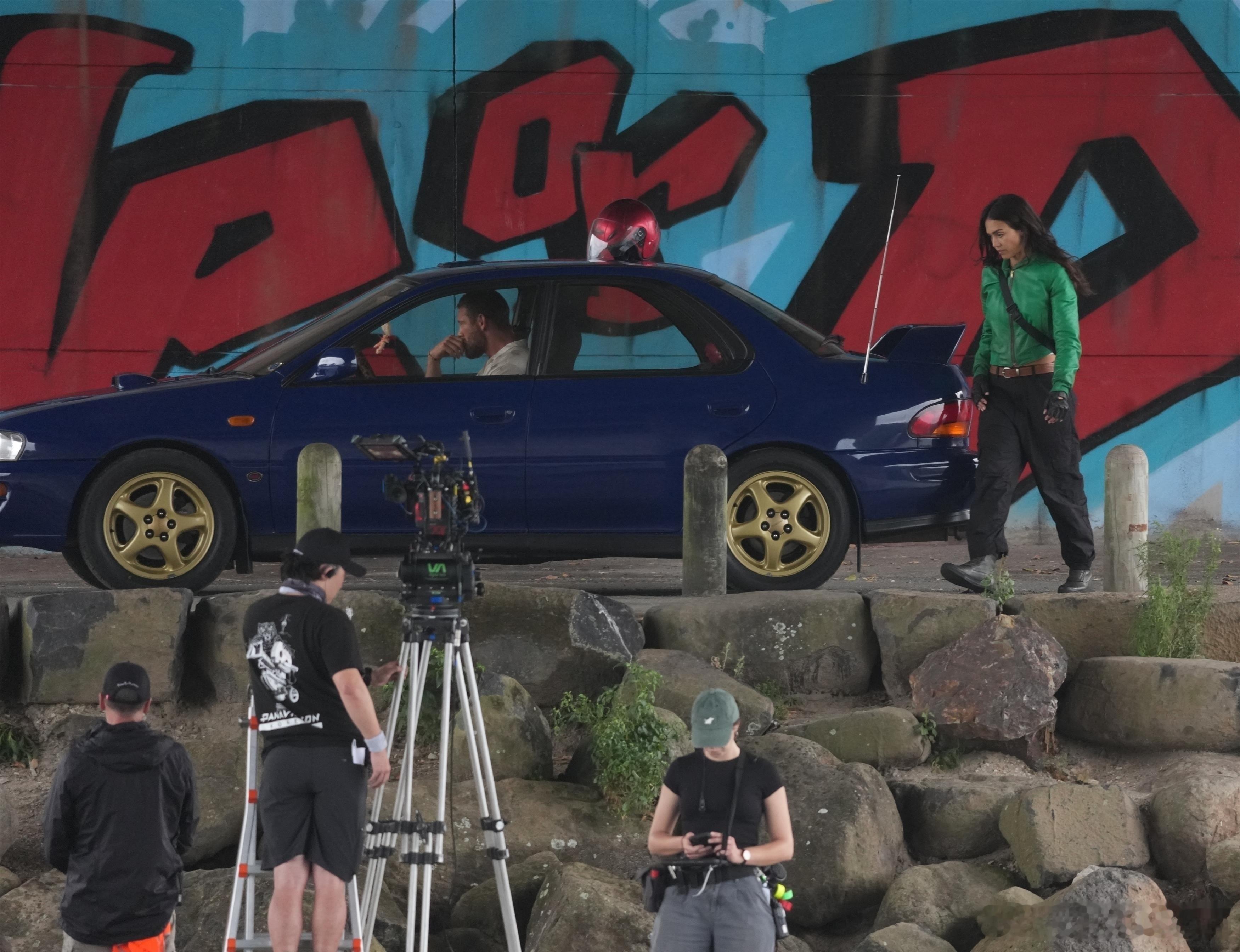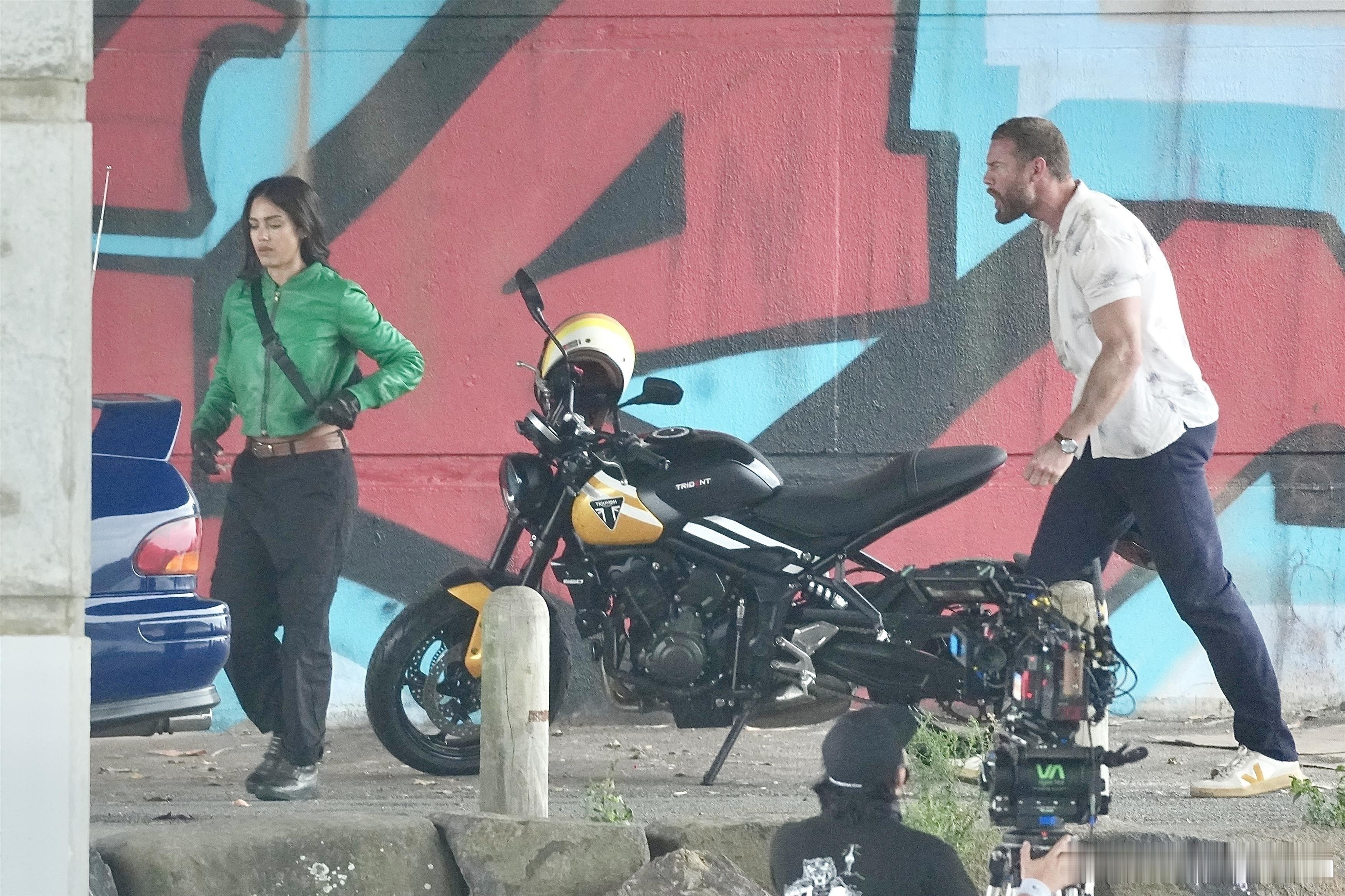 Jessica alba杰西卡阿尔芭继续在澳大利亚黄金海岸为新片《the mark》开工,芭姐当起了摩托车手,之前染黑发也是为了这部电影的造型