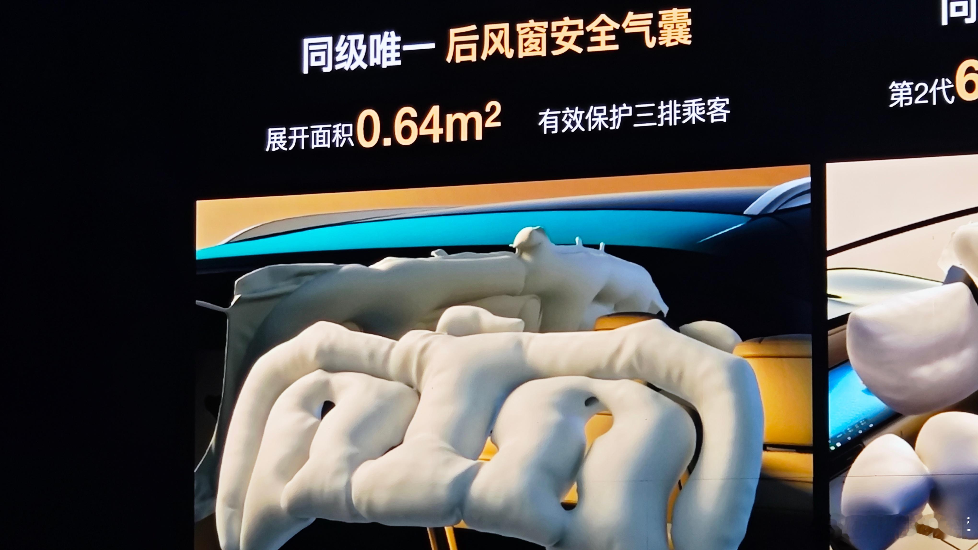 虽然每家都说安全,但这个车第三排座位后面有一整块安全气囊,牛