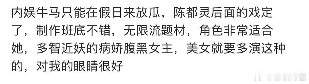 🍉陈都灵下一部戏,制作班底不错,无限流题材,角色非常适合她,多智近妖的病娇腹黑女主
