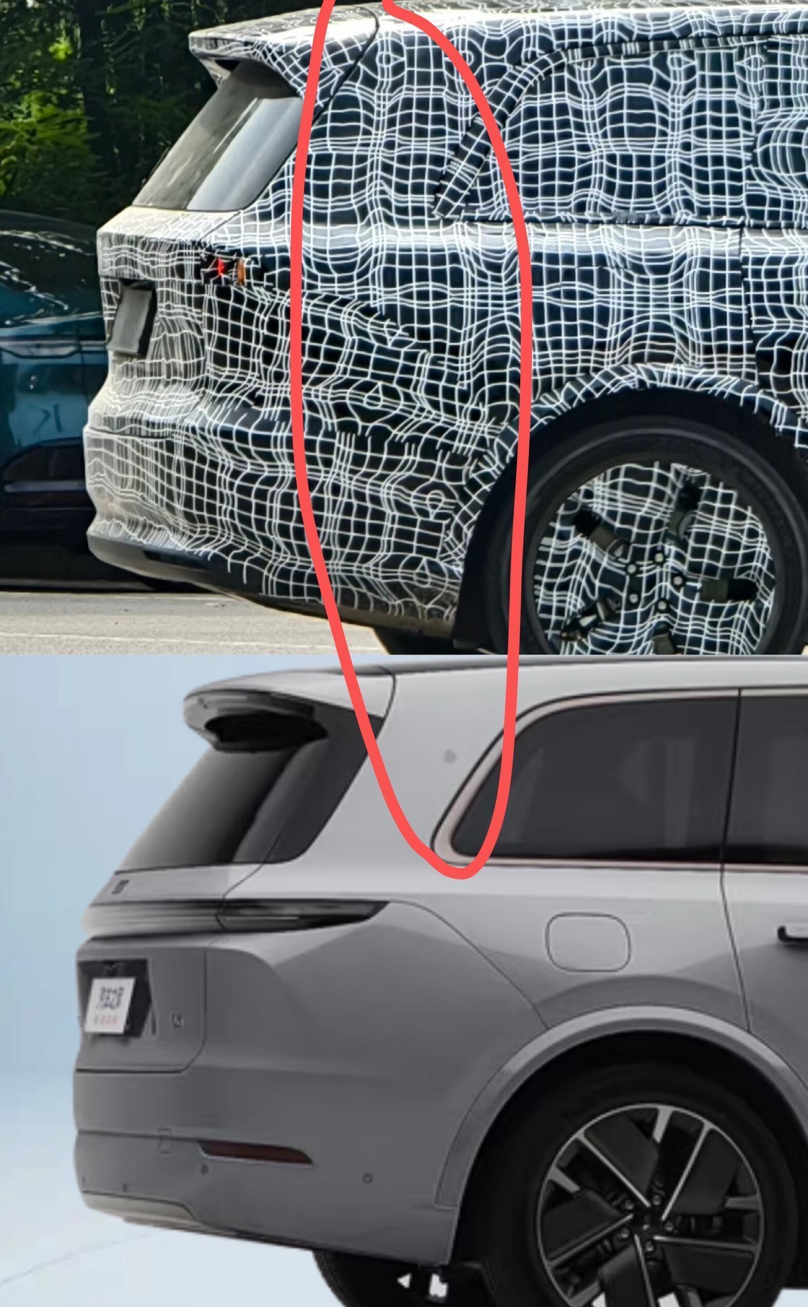 改款 L9 明显加长了,尾灯下面的凹槽也没有了,前脸星环的下方的倾斜角度也变小了,更有点像路虎揽胜,关键是后轮转向终于有了