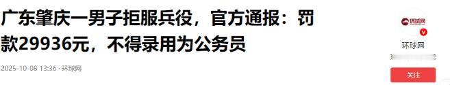 广东肇庆一名大学本科男生,主动报名参军,一路顺利通过体检,如愿进入西藏陆军服兵役。可谁也没想到,他到了部队后,却因难以适应训练想退伍。即便部队多次耐心教育引导,他仍铁了心拒绝服兵役,还放话愿承担一切法律后果。之后,他被部队除名并退回原籍,被罚款29936元和6条处罚通知! 早上六点的起床号一响,黄某某就慌了——在大学里习惯睡懒觉的他,手忙脚乱穿衣服时,战友们已经开始叠被子了。 等他好不容易套好军装,看到战友们叠得方方正正的“豆腐块”,再看看自己揉成一团的被子,班长皱着眉的眼神,让他第一次觉得“军营不是自己想的那样”。 这样的不适,最终让他付出了沉重代价。 今年9月,鼎湖区征兵办通报,黄某某因拒服兵役被罚款29936元,户口本永久标“拒服兵役”,终身禁考公进国企,两年内不能升学出国。 而全国类似案例里,河北马某某罚8.64万元,山东杨某罚7.28万元,广西周某罚3.71万元,罚款金额不同,但核心惩戒如出一辙。 谁能想到,几个月前他还顺利走完了征兵流程。 今年春天报名后,他的体检很顺利,身高、视力、心肺功能全合格;政审时,社区和学校都说他表现好;役前教育半个月,跟着学队列、听国防课,虽然累,但想着能去西藏,还是咬着牙坚持。 3月拿到入伍通知书,被分到西藏陆军某旅时,他穿着新军装拍视频给爸妈,语气里满是骄傲。 可到了西藏阿里,高原环境给了他更大的冲击。 海拔超4000米的地方,每一次呼吸都带着胸口的灼痛感,早上出操跑几百米就喘得蹲在地上。 五公里越野时,他被战友远远甩在后面,好几次想放弃,是班长硬推着他往前。 比训练更让他难受的是纪律。 吃饭要排队,不能说话,连夹菜都要小心翼翼;手机只有周末能看半小时,想跟朋友聊聊天都不行;晚上熄灯后不能再开灯,以前熬夜刷视频的习惯彻底改不了。 没到一个月,他就找借口不训练,跟战友抱怨“这日子没法过”。 部队和家人没少劝他。 连长找他谈:“每个新兵都有适应期,我刚入伍时也跑不动,多练就好。” 指导员跟他聊:“阿里边疆需要人守,穿军装就得担担子。” 地方征兵办打电话,把拒服兵役的后果一条条讲清楚。 父母天天哭着劝,可他铁了心要走,说“就算罚钱也要回家”,还写了书面申请签字按手印。 最终部队按规定将他除名送回肇庆。 2025年全国拒服兵役案件比去年少15%,说明处罚有警示作用。 黄某某的经历其实很直白:他当初报名时,只看到宣传图里军人的威风,没多想训练的苦、纪律的严。 随手填的报名信息,最终变成了终身的代价。 对此,有网友表示,真挺无语的,当初看宣传图觉得军人威风就随便报名,没考虑过军营的苦和纪律,这不是拿自己前途当儿戏吗?罚款近 3 万还留终身污点,以后考公、升学都受影响,纯属自找的,成年人得对自己的选择负责啊! 还有的网友表示,看到全国还有好几个类似案例,罚款金额不同但核心惩戒一样,觉得挺合理的。 服兵役是义务,不是想进就进想退就退的,要是人人都这样,国防安全谁来保障?那些坚守边疆的战士多辛苦,他这点苦都受不了,太不应该了。 也有的网友认为,别光骂他,或许役前教育能再细化点?提前让新兵体验军营作息和训练强度,让他们有心理准备,可能就少些这样的事了。 不过他自己也有问题,爸妈劝、部队引导都不听,铁了心要退,后果只能自己扛。 成年人做选择,不能只凭一时热情,尤其是参军这种大事,想清楚后果,才不会让冲动毁了自己的路。 那么到最后,你们是怎么看的呢? 如果各位看官老爷们已经选择阅读了此文,麻烦您点一下关注,既方便您进行讨论和分享,又能给带来不一样的参与感,感谢各位看官老爷们的支持!