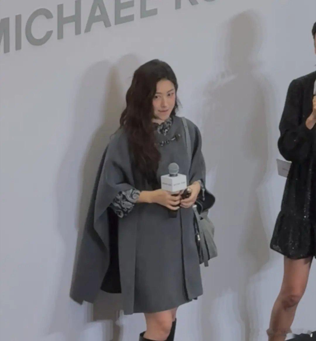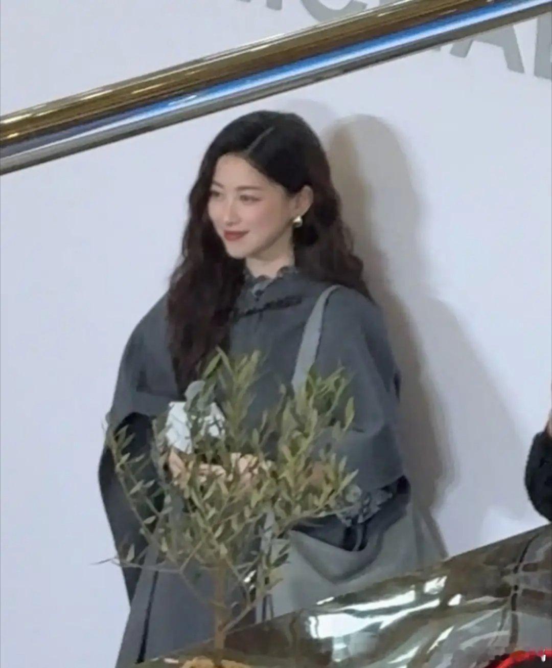 朱珠着灰色斗篷大波浪,本人气质超绝,状态超好,超级美……
